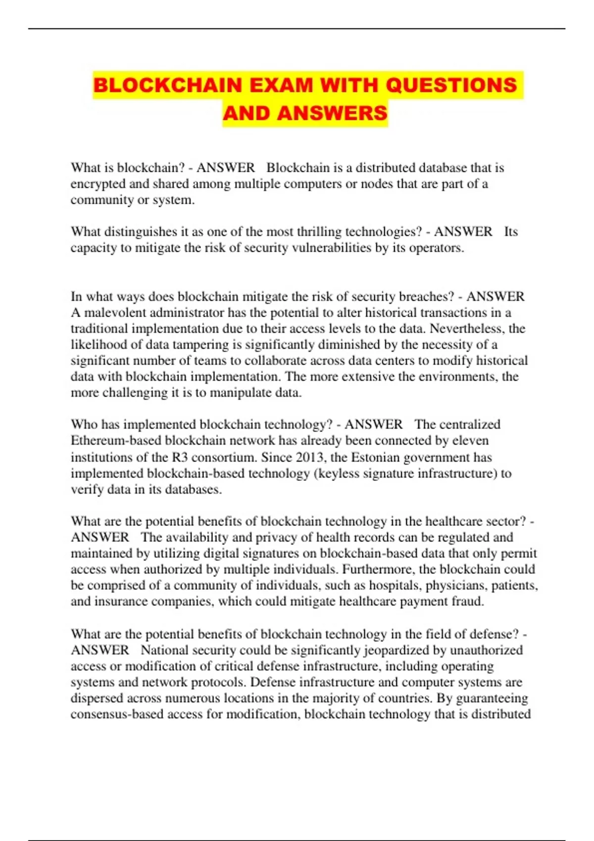BLOCKCHAIN CURRENT BUNDLED EXAMS WITH ALL QUESTIONS AND ANSWERS