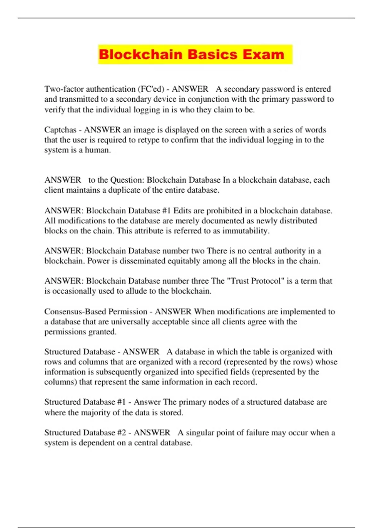 BLOCKCHAIN CURRENT BUNDLED EXAMS WITH ALL QUESTIONS AND ANSWERS