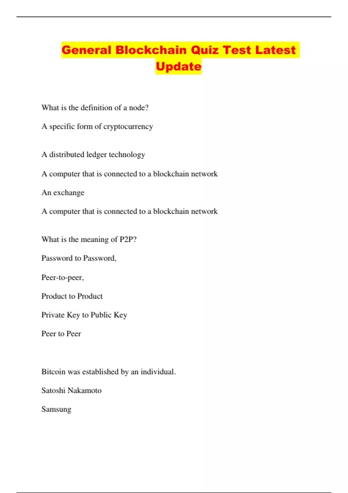 BLOCKCHAIN CURRENT BUNDLED EXAMS WITH ALL QUESTIONS AND ANSWERS