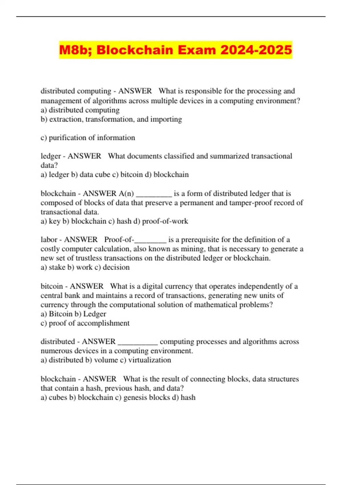 BLOCKCHAIN CURRENT BUNDLED EXAMS WITH ALL QUESTIONS AND ANSWERS