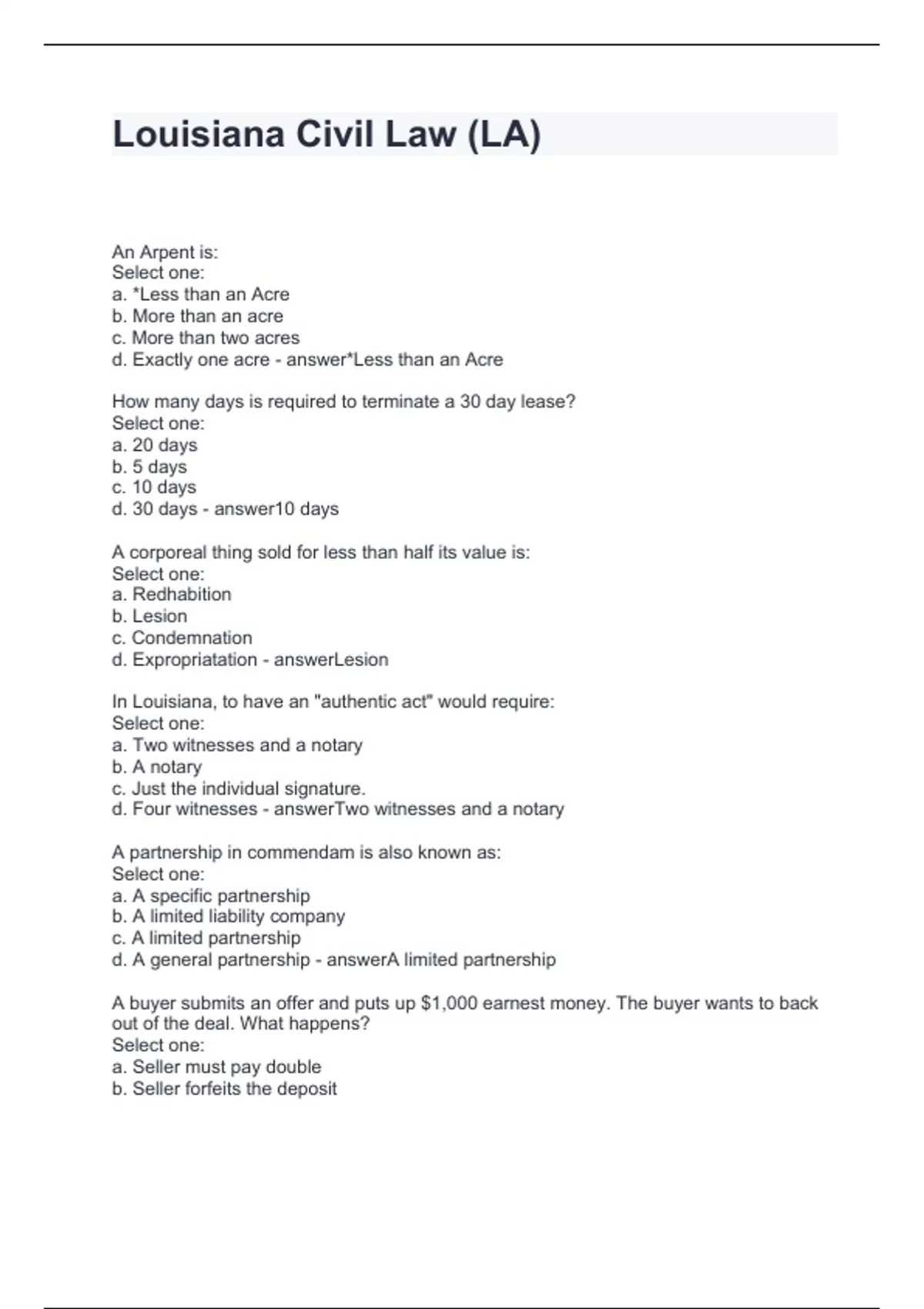 Louisiana Civil Law (LA) Questions with correct Answers 2024