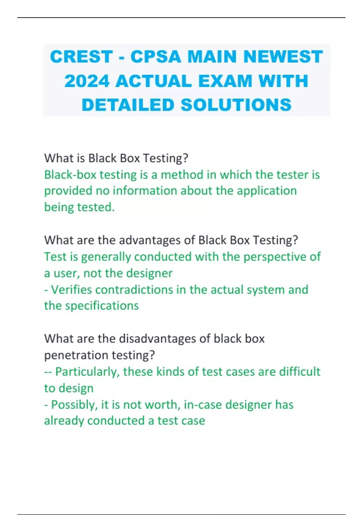 CREST - CPSA MAIN NEWEST 2024 ACTUAL EXAM WITH DETAILED SOLUTIONS