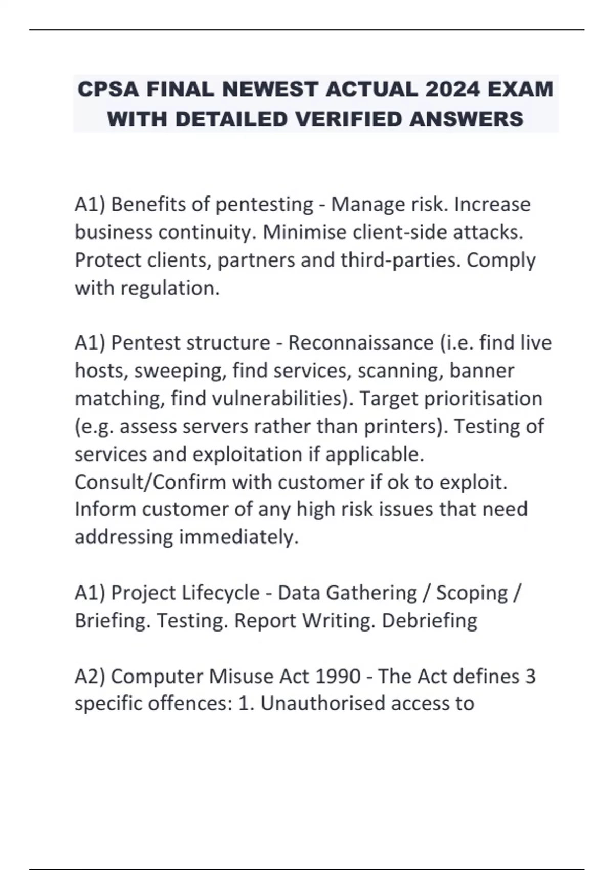 CPSA FINAL NEWEST ACTUAL 2024 EXAM WITH DETAILED VERIFIED ANSWERS
