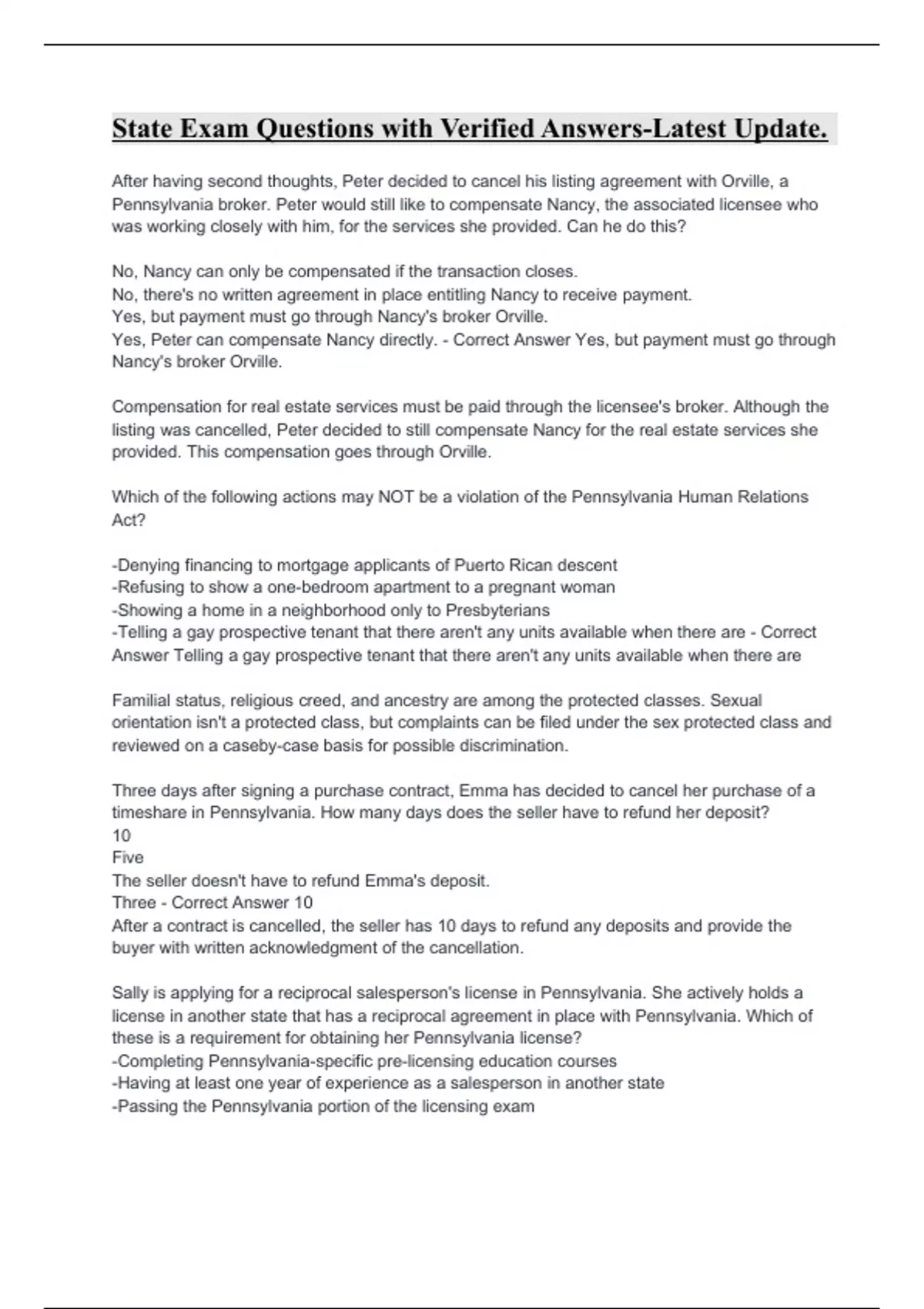 State Exam Questions with Verified Answers-Latest Update.