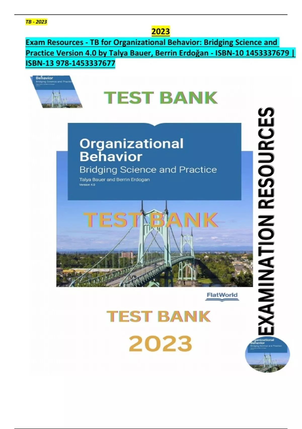 Exam Resources - TB for Organizational Behavior: Bridging Science and Practice Version 4.0. Complete, Detailed and latest Version. All Chapters (1-15) Included.