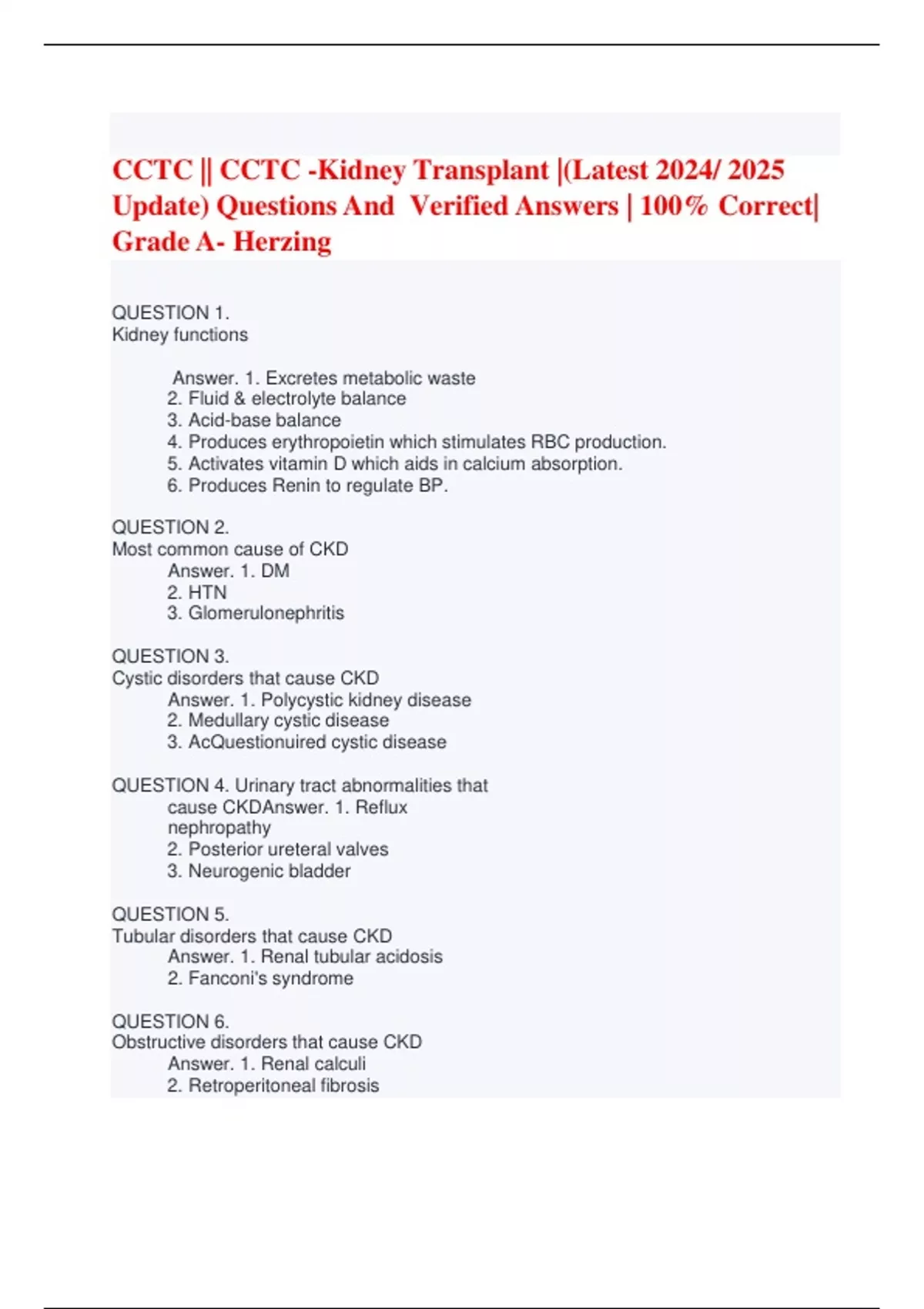 CCTC || CCTC -Kidney Transplant |(Latest 2024/ 2025 Update) Questions And Verified Answers | 100% Correct| Grade A- Herzing LATEST
