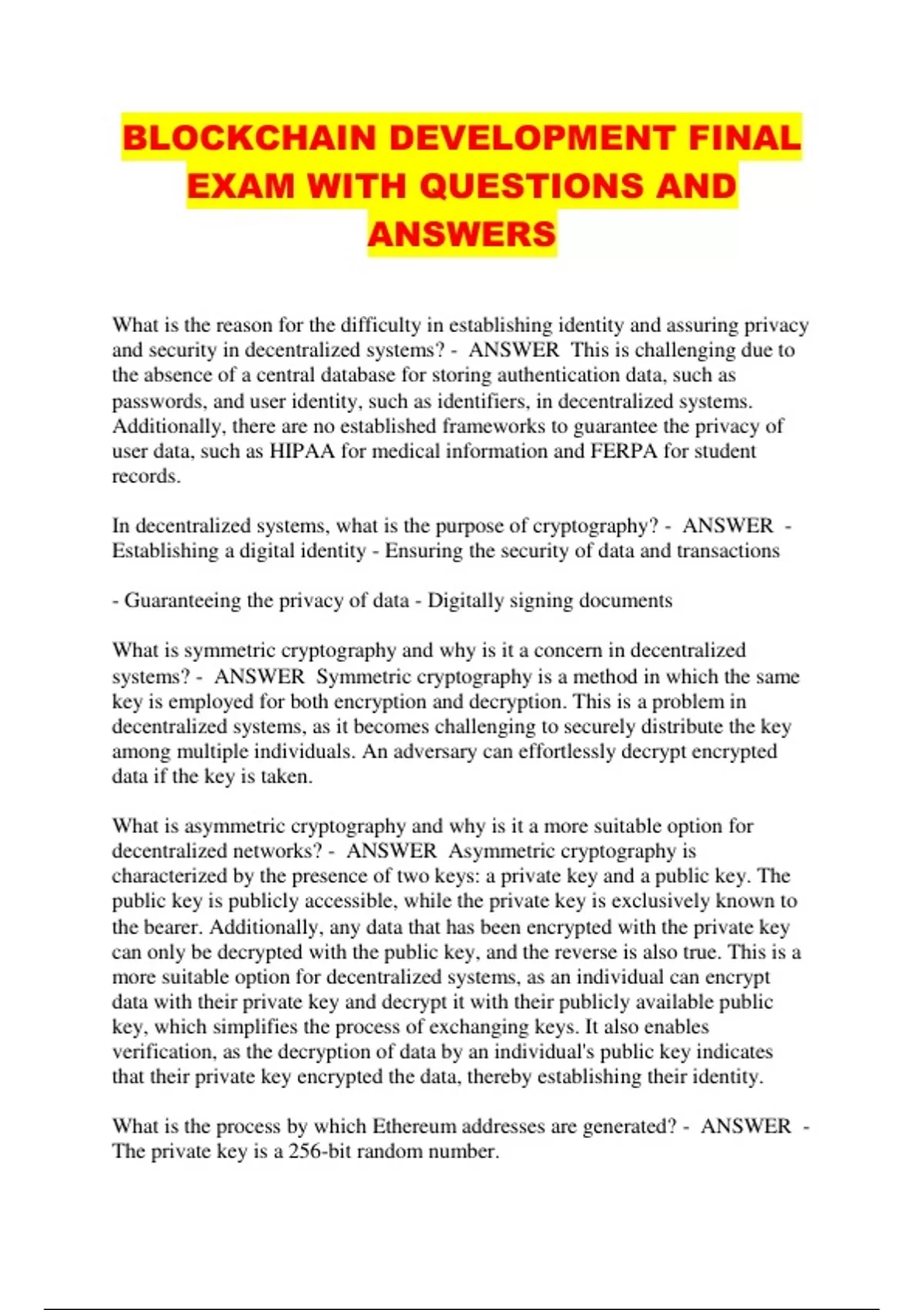 BLOCKCHAIN DEVELOPMENT FINAL EXAM WITH QUESTIONS AND ANSWERS...