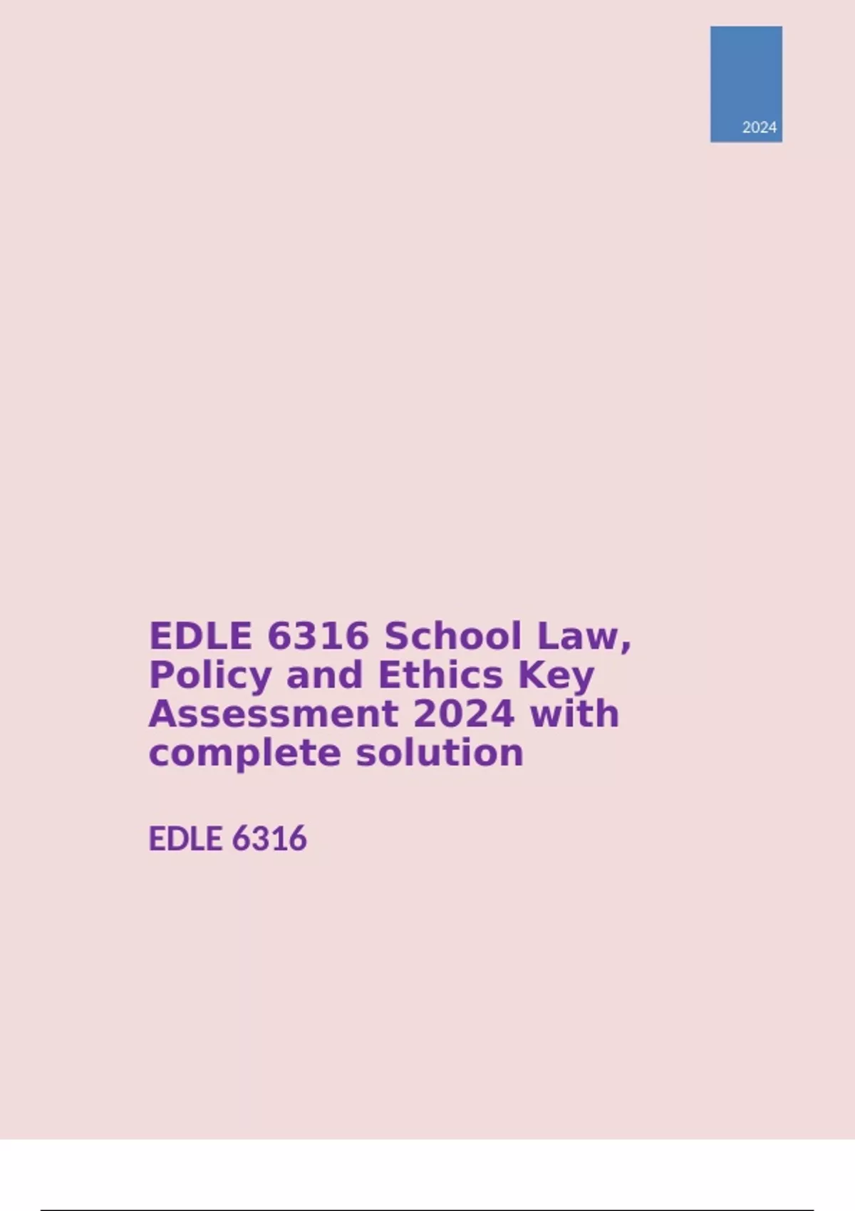 EDLE 6316 School Law, Policy and Ethics Key Assessment 2024 with complete solution