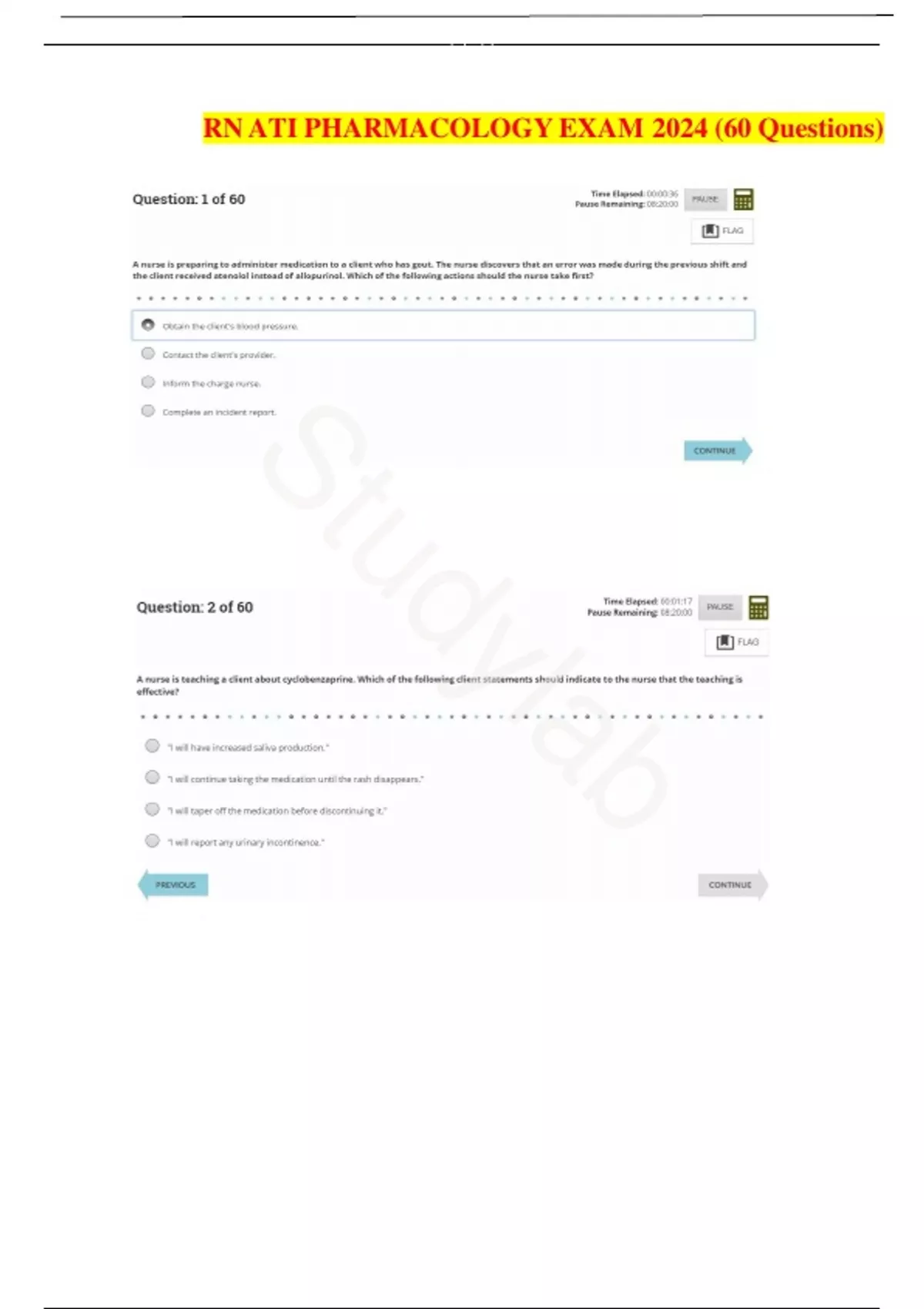 RN ATI PHARMACOLOGY EXAM 2024 (60 Questions)