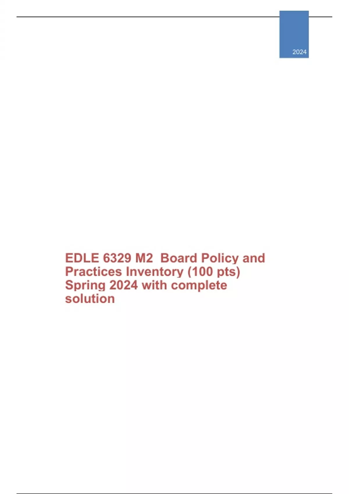 EDLE 6329 M2 Board Policy and Practices Inventory (100 pts) Spring 2024 with complete solution