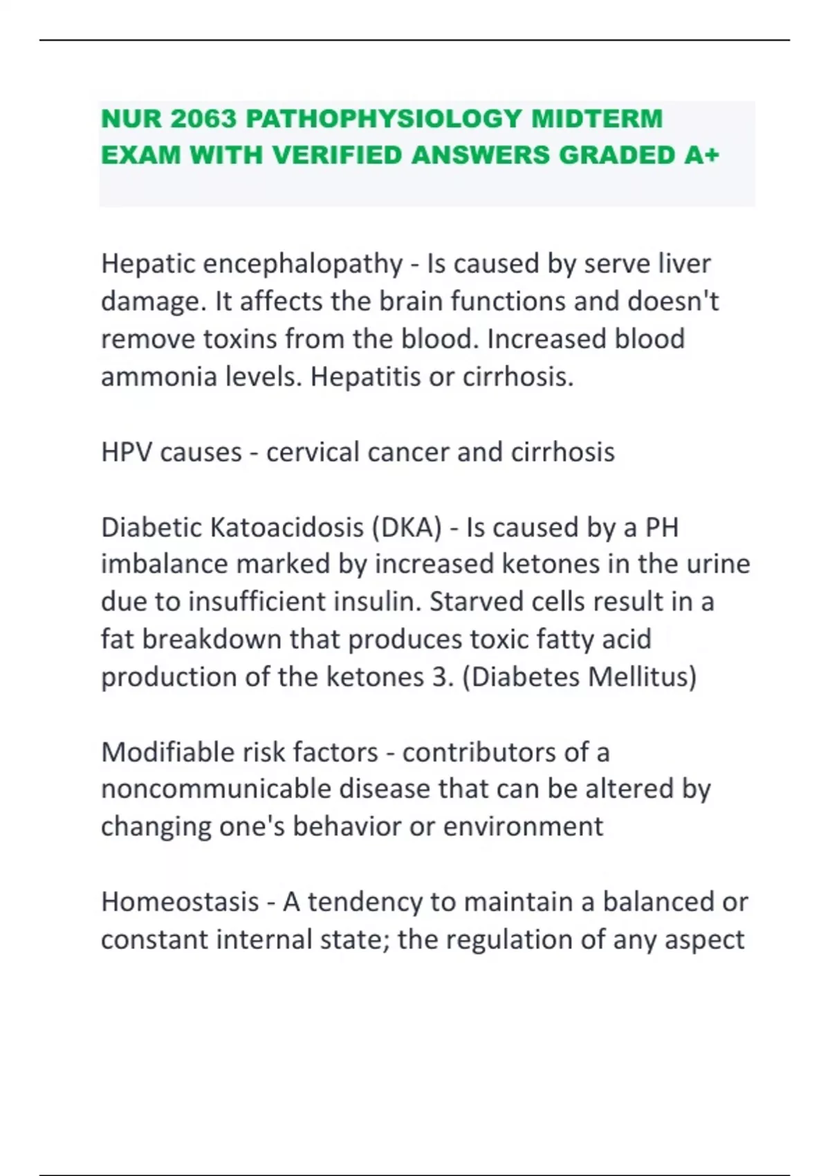 NUR 2063 PATHOPHYSIOLOGY MIDTERM EXAM WITH VERIFIED ANSWERS GRADED A+