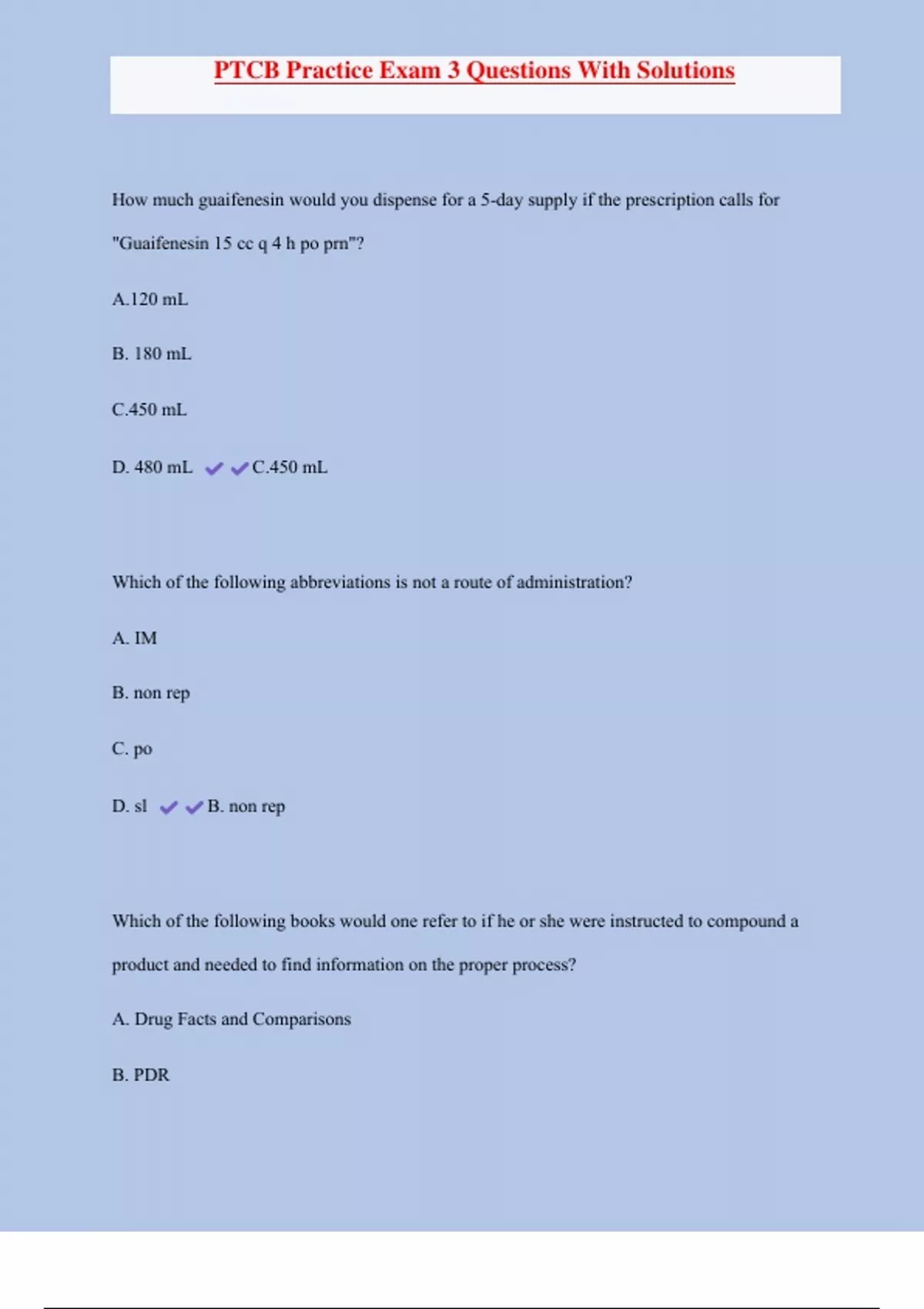 ptcb practice exam 3 questions with solutions