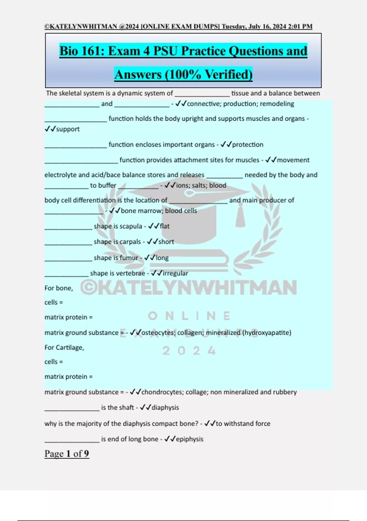 Bio 161 Penn State University Exam Bundle Pack 2024 /2024 Verified and Updated