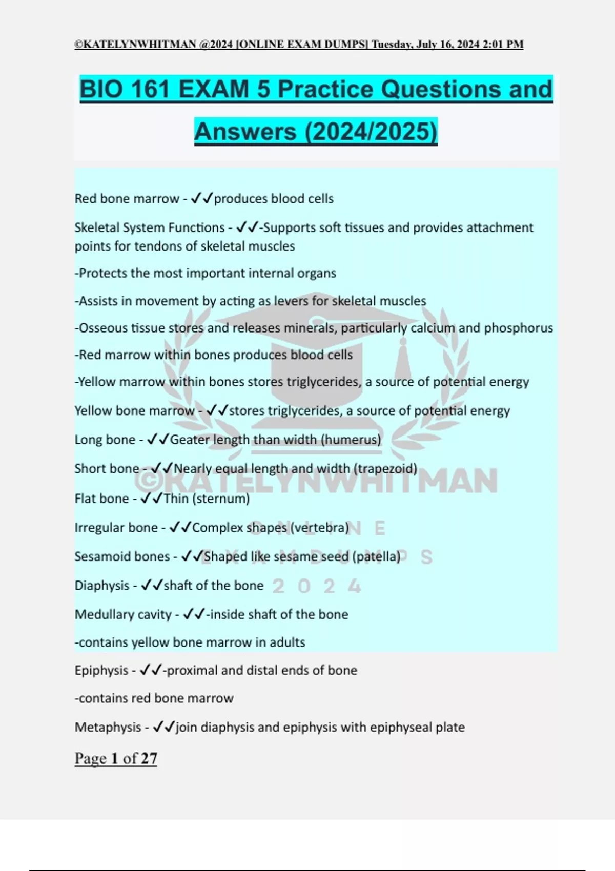 BIO 161 EXAM 5 Practice Questions and Answers (2024/2025)