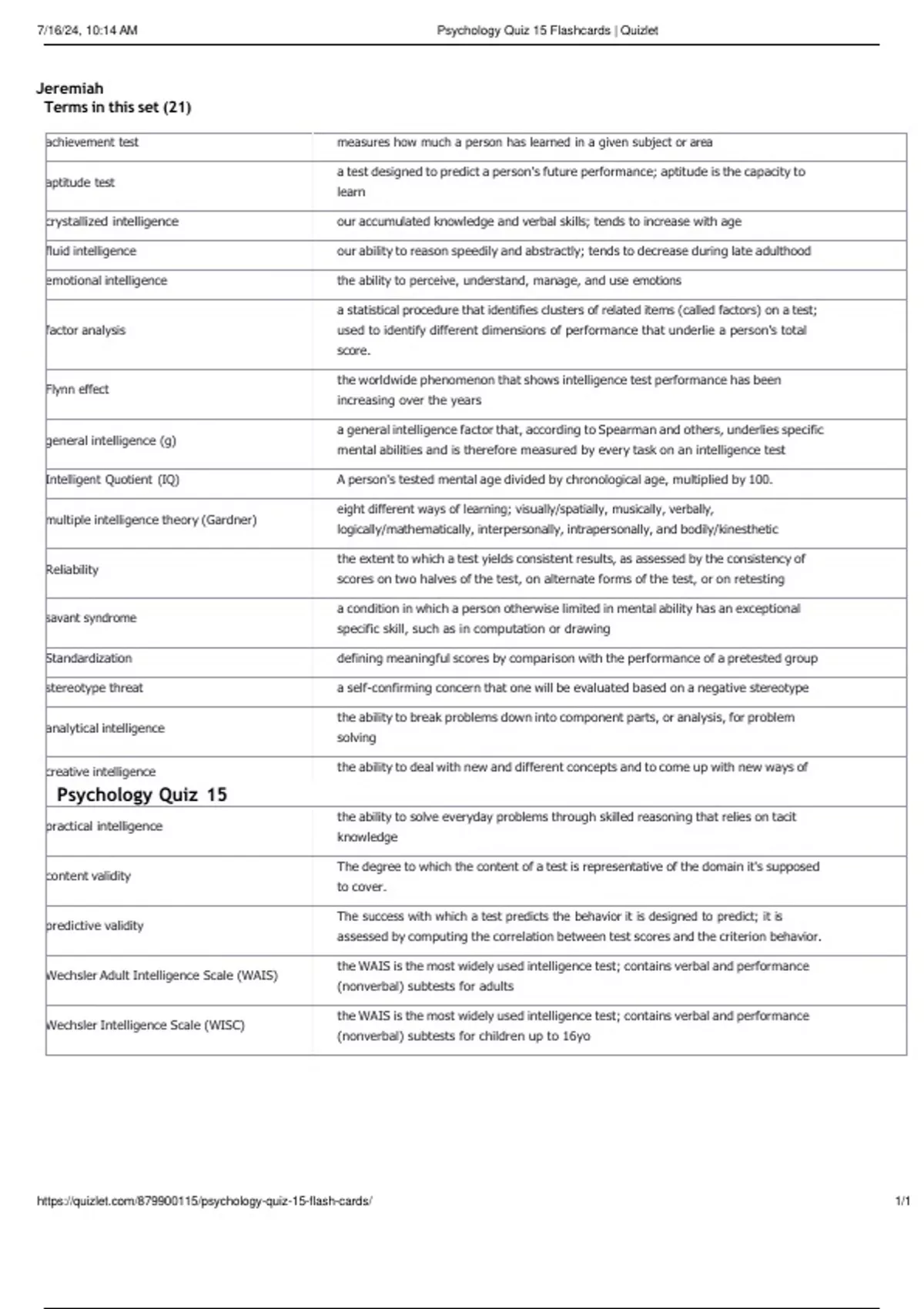 psychology quiz 15 flashcards 100 sure answers