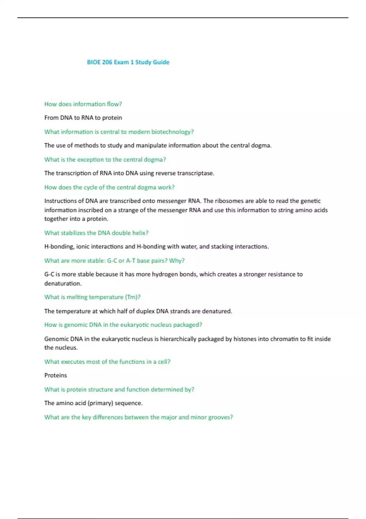 BIOE 206 Exam 1 Study Guide questions and answers with complete solution 2024