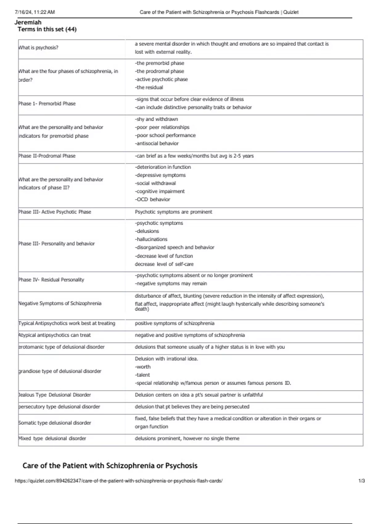 Care of the Patient with Schizophrenia or Psychosis Flashcards _ 100-SURE ANSWERS.pdf