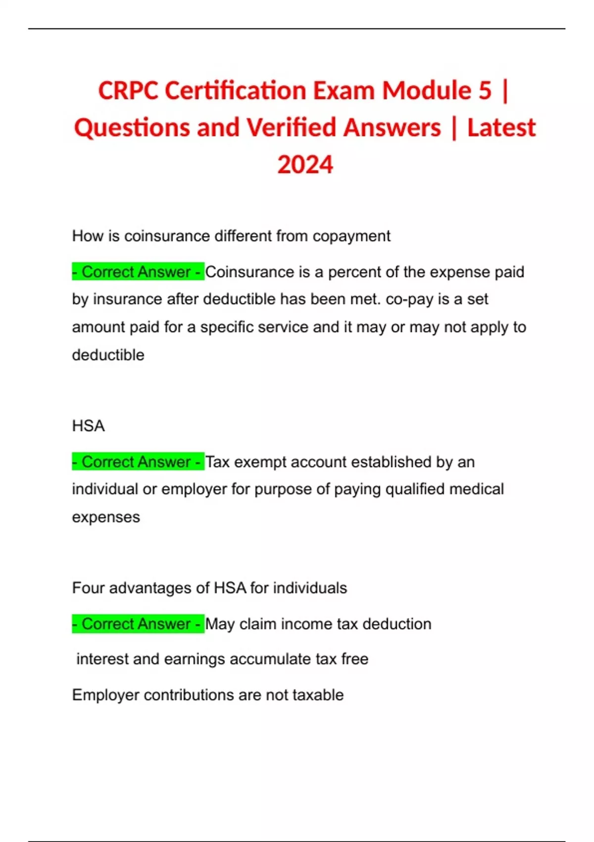CRPC Certification Exam Module 5 | Questions and Verified Answers | Latest 2024 CRPC Certification Exam Module 5 | Questions and Verified Answers | Latest 2024 CRPC Certification Exam Module 5 | Questions and Verified Answers | Latest 2024
