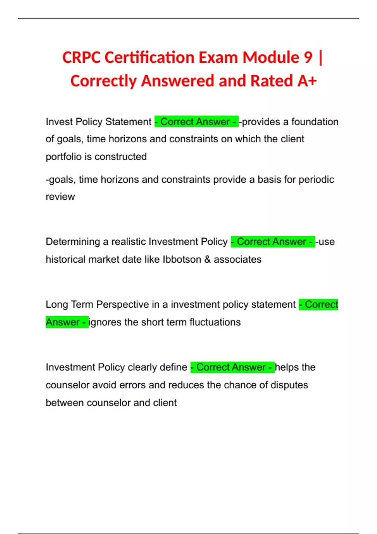 CRPC Certification Exam Module 9 | Correctly Answered and Rated A+