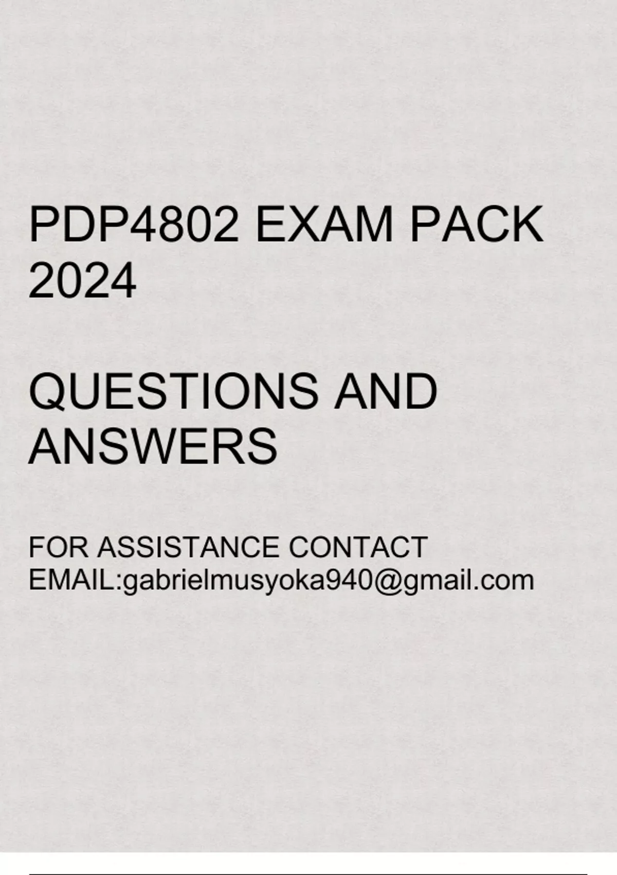 PDP4802 Exam pack 2024(Questions and answers) With accurate answers and assurance that they are in the exam.