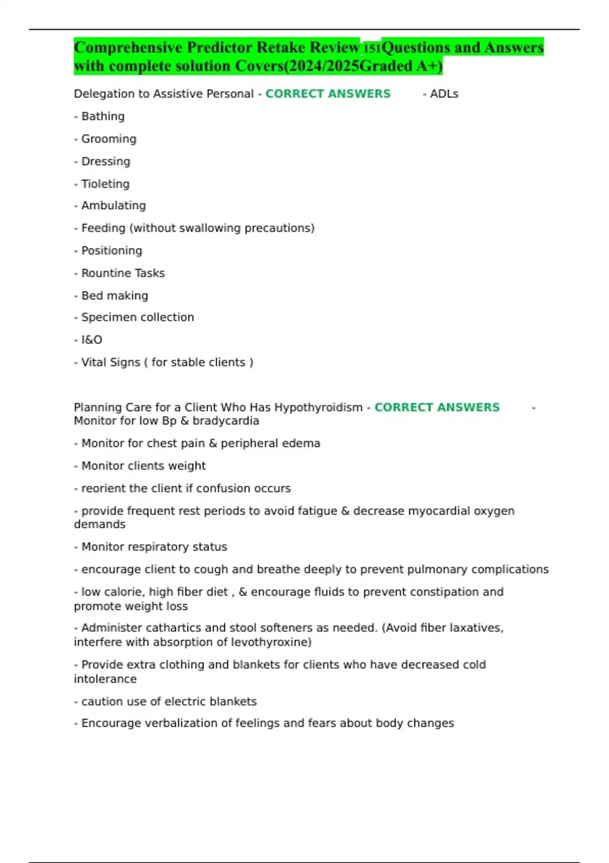 Comprehensive Predictor Retake Review 151Questions and Answers with complete solution Covers(2024/2025Graded A+)