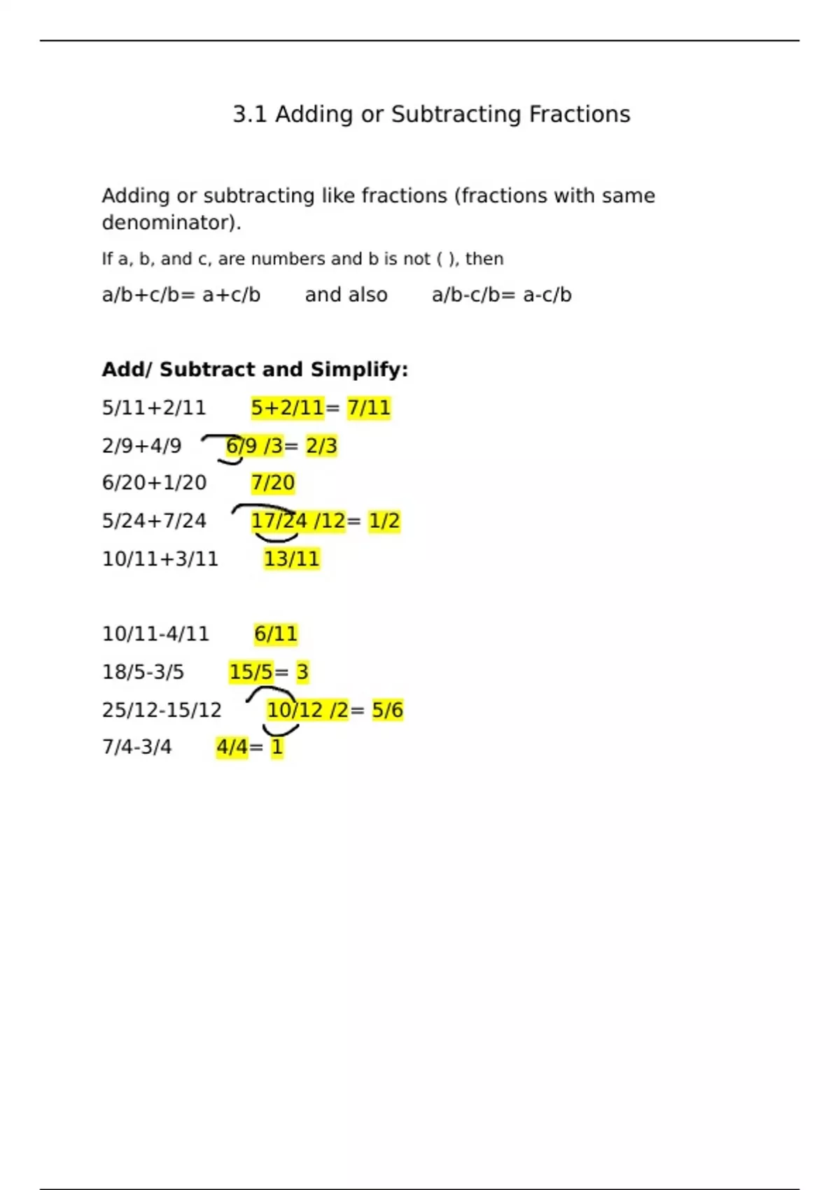 MATL 0032 Notes: 3.1 Adding or Subtracting Fractions