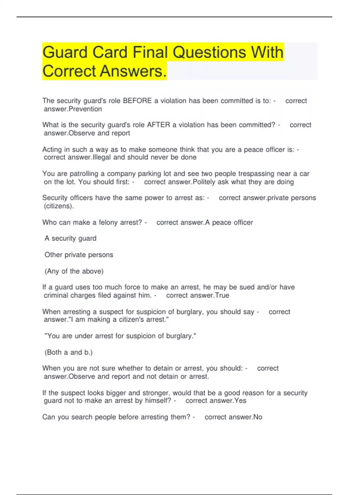 Guard Card Final Questions With Correct Answers.