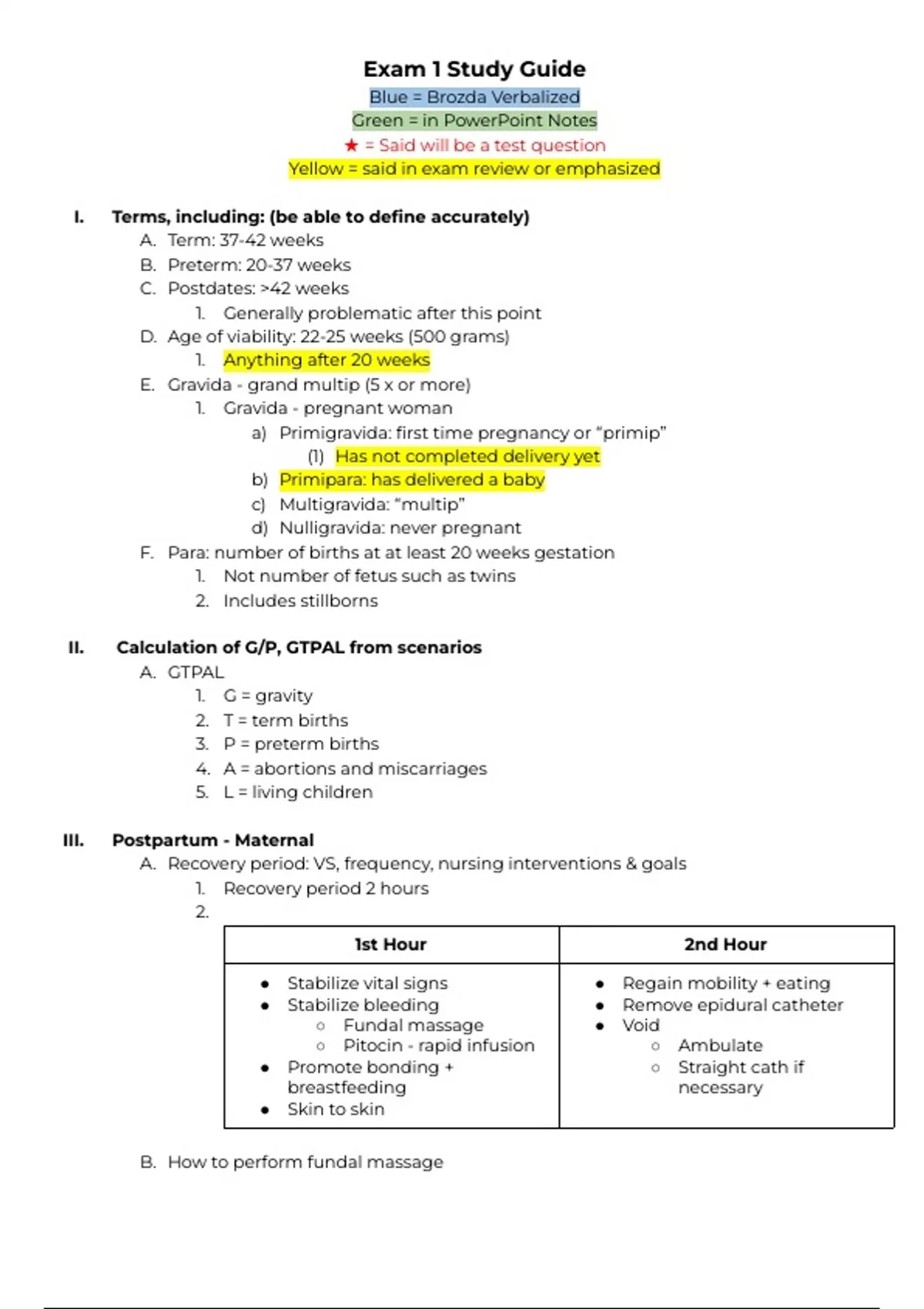 n663: OB USFCA MEMSN Exam 1 OB Notes & Review