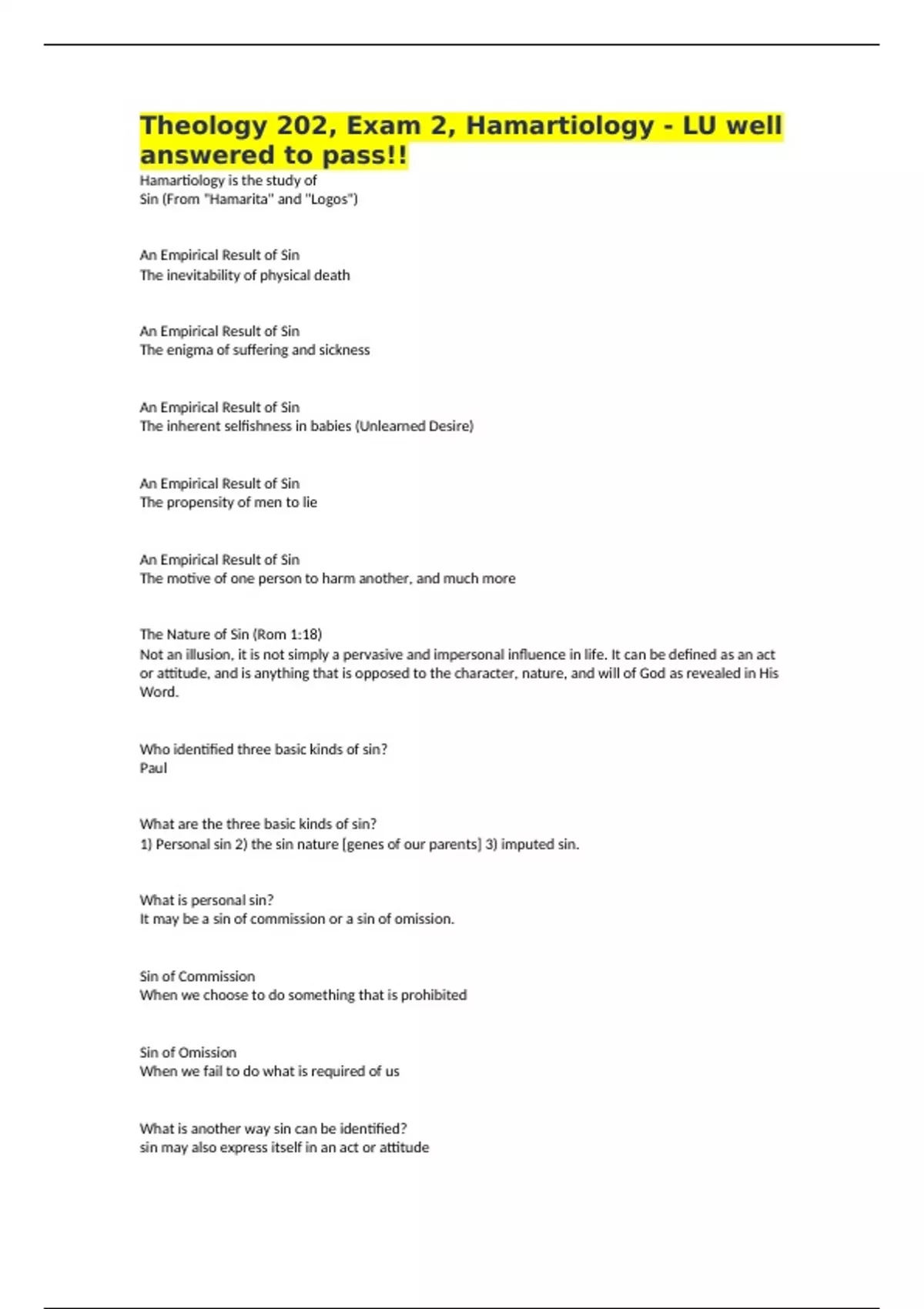 Hamartiology is the study of