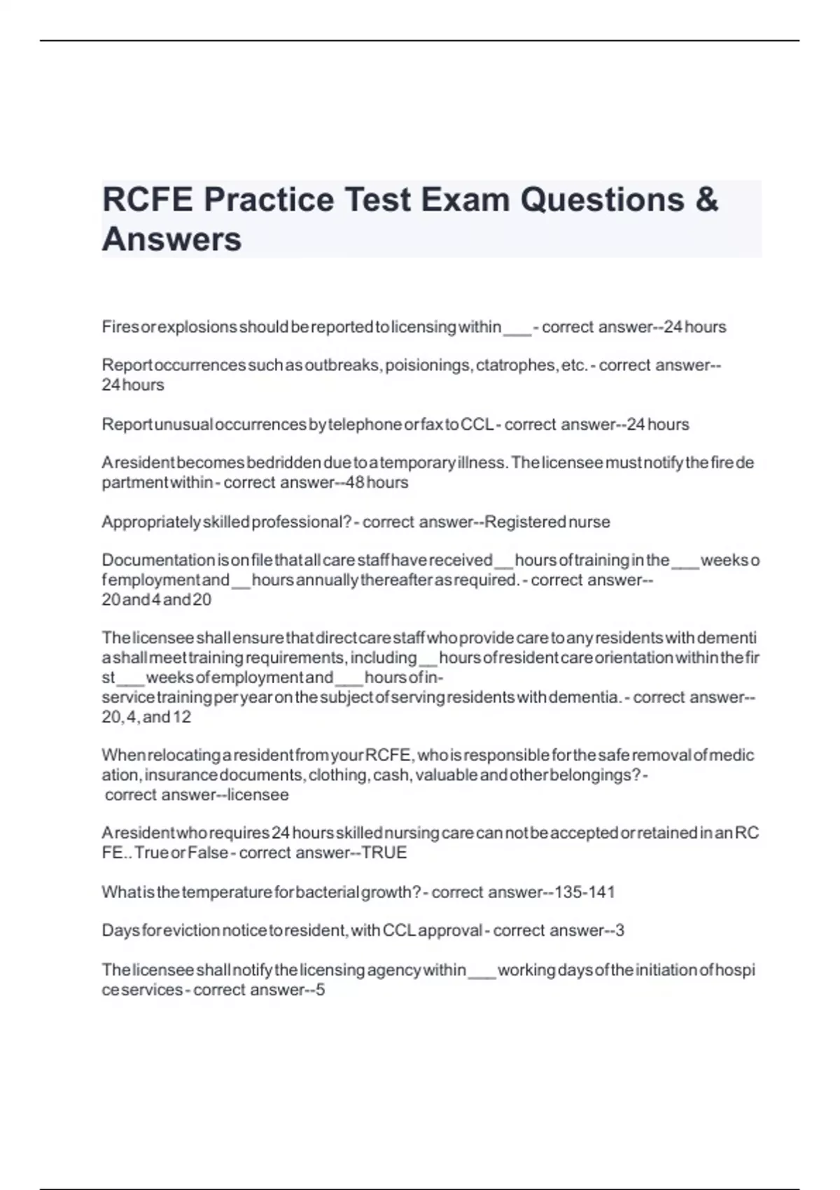 RCFE Practice BUNDLED exams 2024 with 100% correct answers