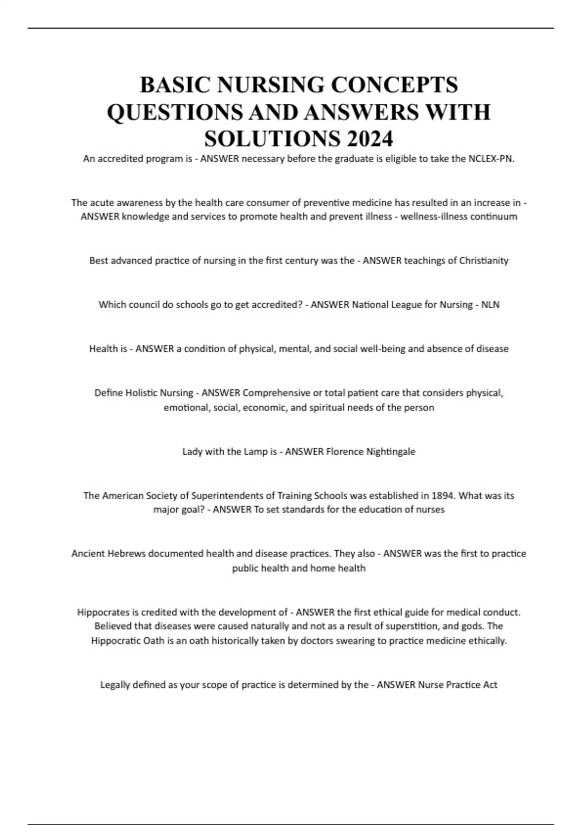 BASIC NURSING CONCEPTS QUESTIONS AND ANSWERS WITH SOLUTIONS 2024