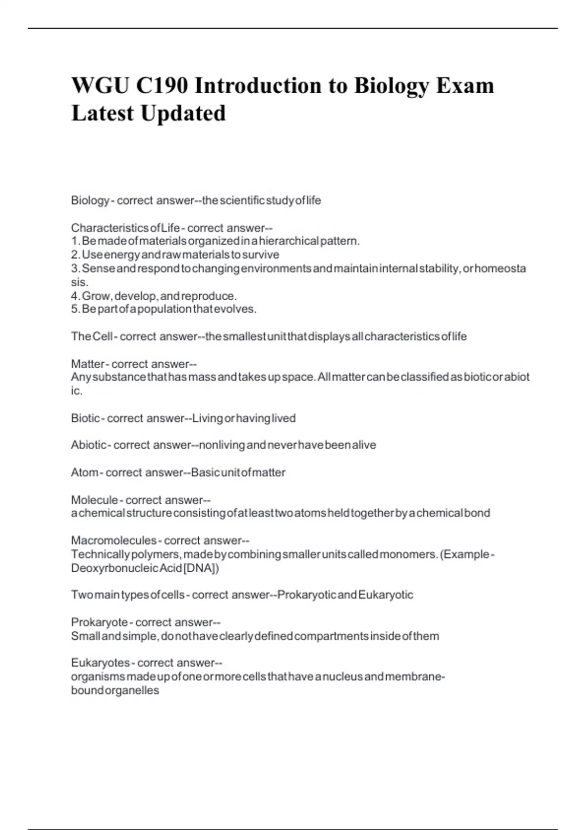 WGU C190 Introduction to Biology Exam Latest Updated.