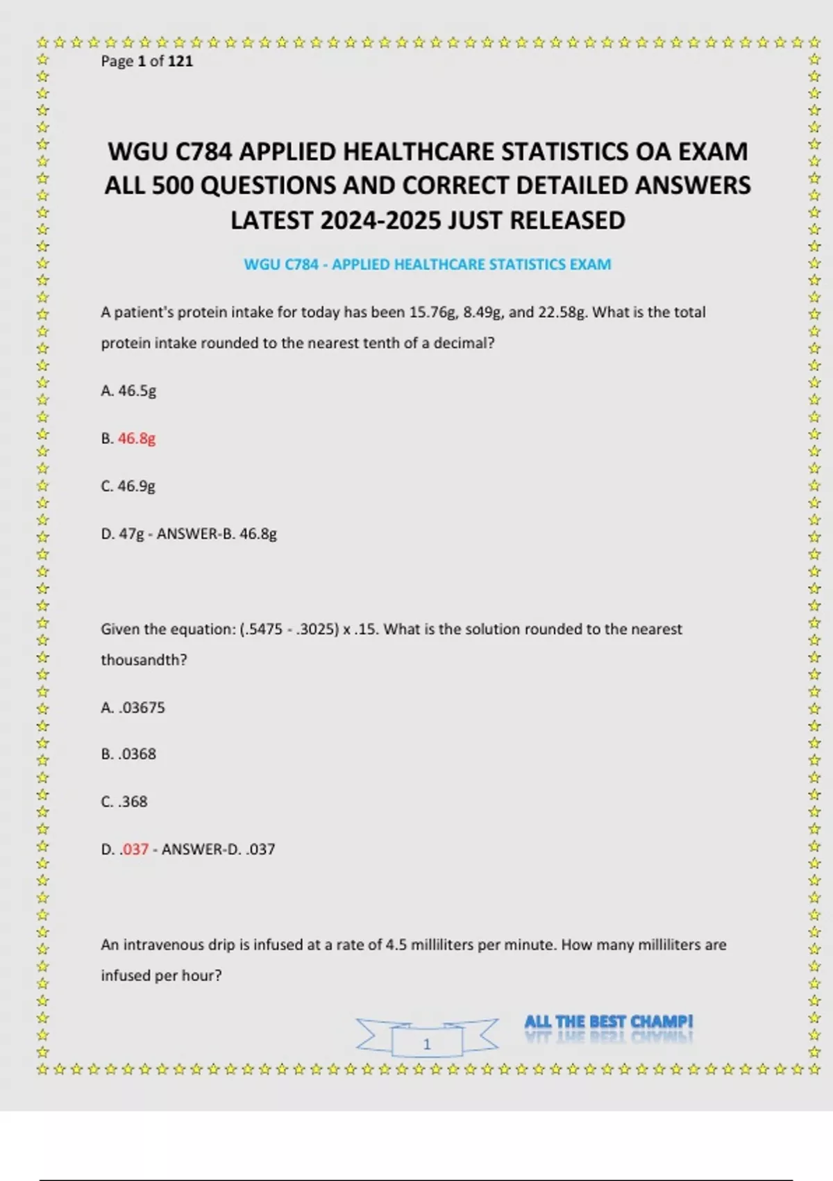 - WGU C784 APPLIED HEALTHCARE STATISTICS OA