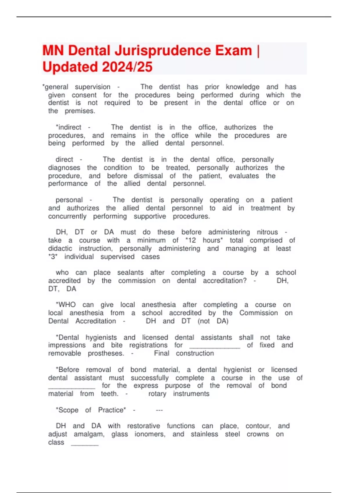 MN Dental Jurisprudence Exam | Updated 2024/25