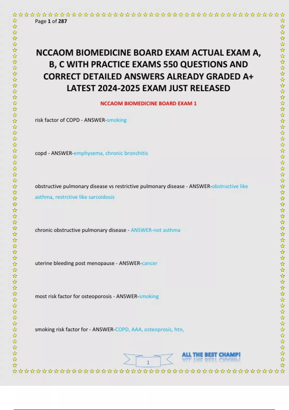 NCCAOM BIOMEDICINE BOARD EXAM ACTUAL EXAM A, B, C WITH PRACTICE EXAMS 550 QUESTIONS AND CORRECT DETAILED ANSWERS ALREADY GRADED A+ LATEST EXAM JUST RELEASED