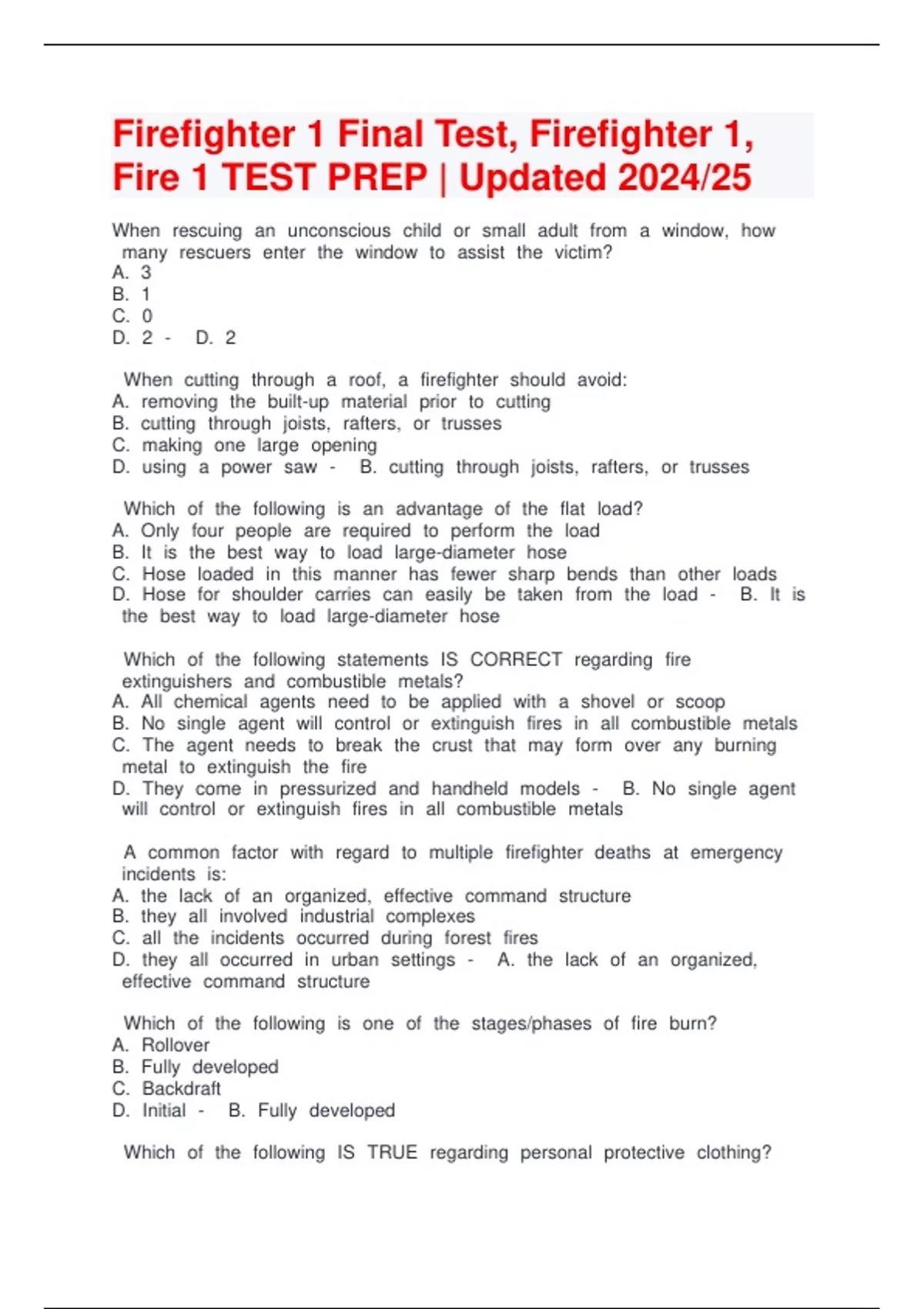 Firefighter 1 Final Test, Firefighter 1, Fire 1 TEST PREP | Updated 2024/25