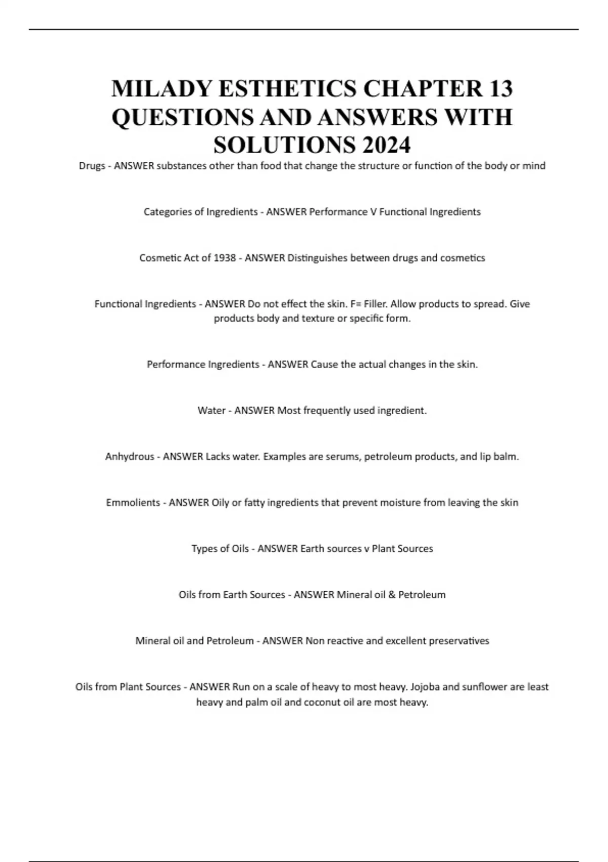 MILADY ESTHETICS CHAPTER 13 QUESTIONS AND ANSWERS WITH SOLUTIONS 2024