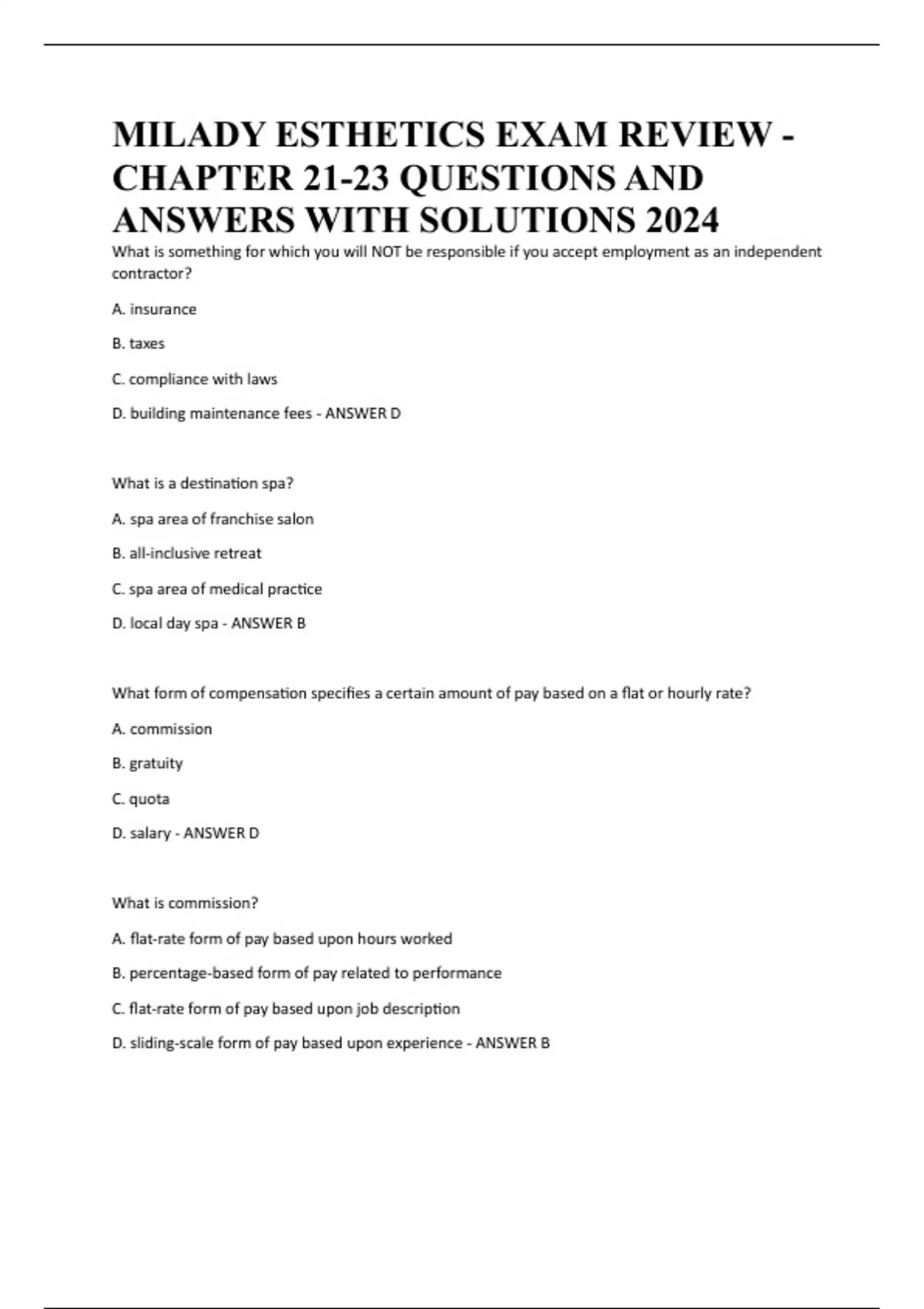 MILADY ESTHETICS EXAM REVIEW - CHAPTER 21-23 QUESTIONS AND ANSWERS WITH SOLUTIONS 2024
