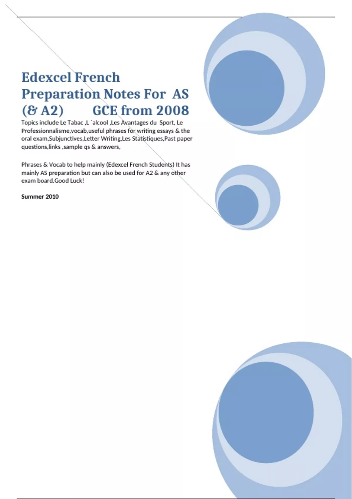 Phrases & Vocab to help mainly (Edexcel French Students) It has