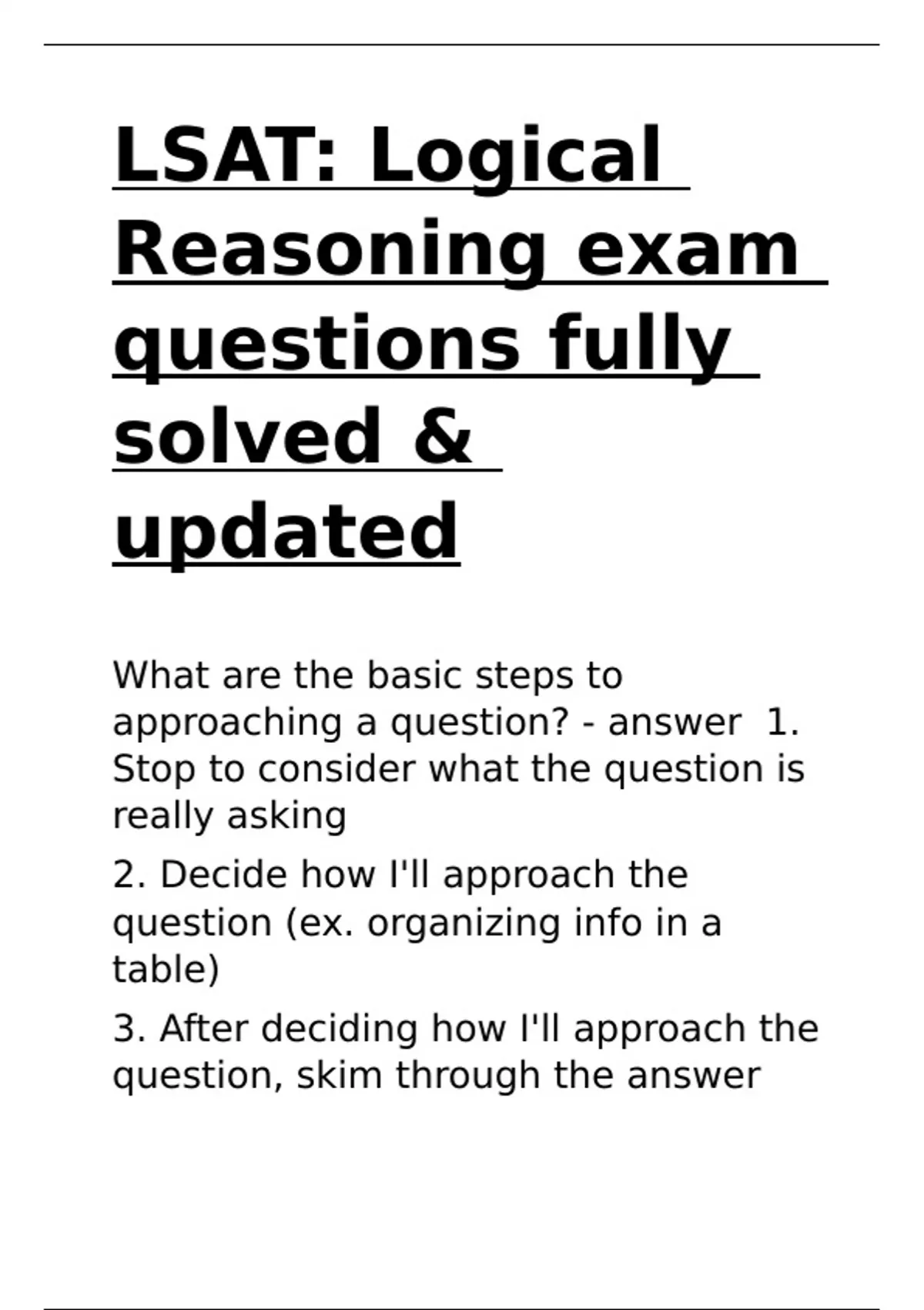 LSAT Logical Reasoning exam questions fully solved & updated