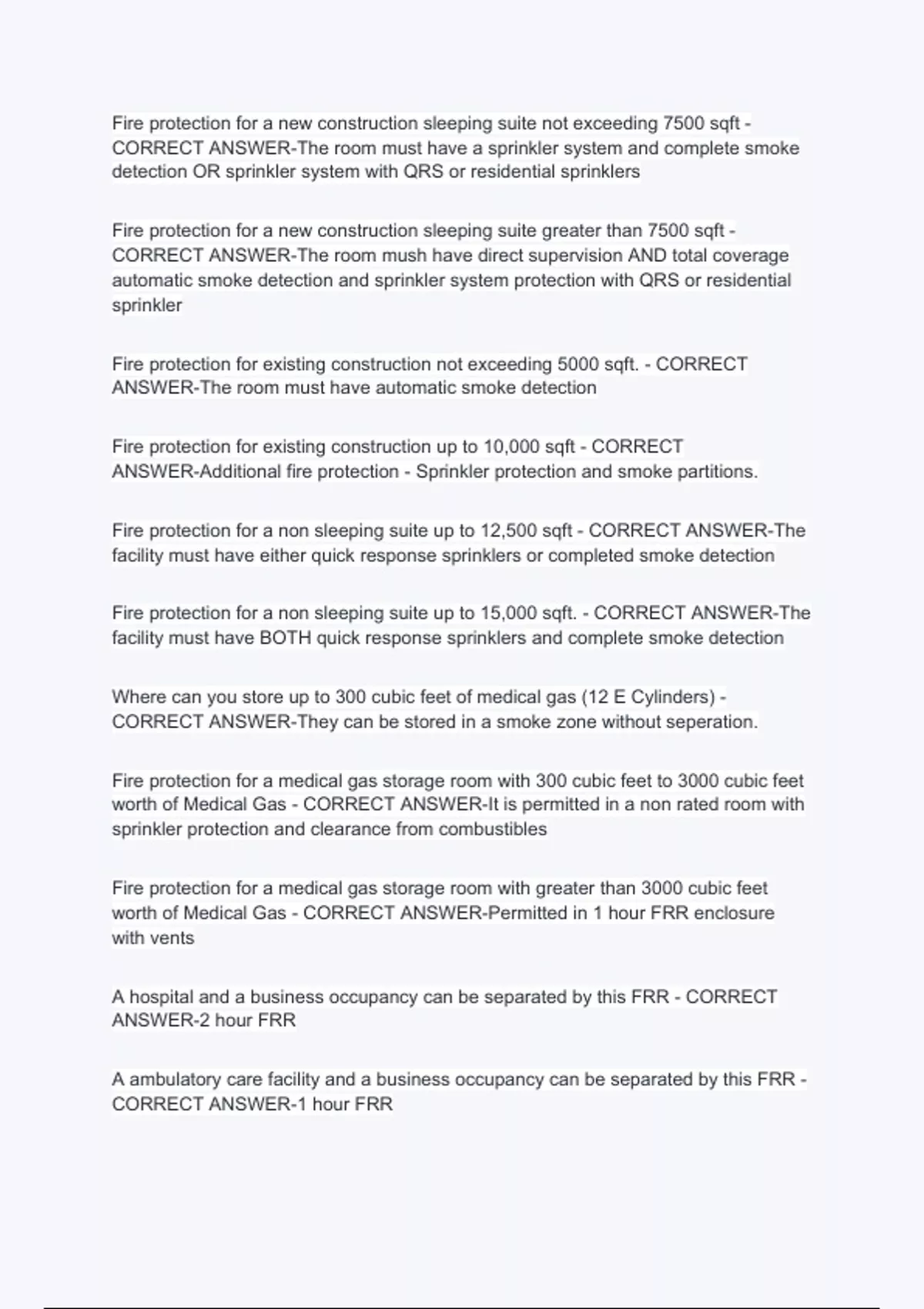 Fire protection for a non sleeping suite up to 12,500 sqft - CORRECT ANSWER-The