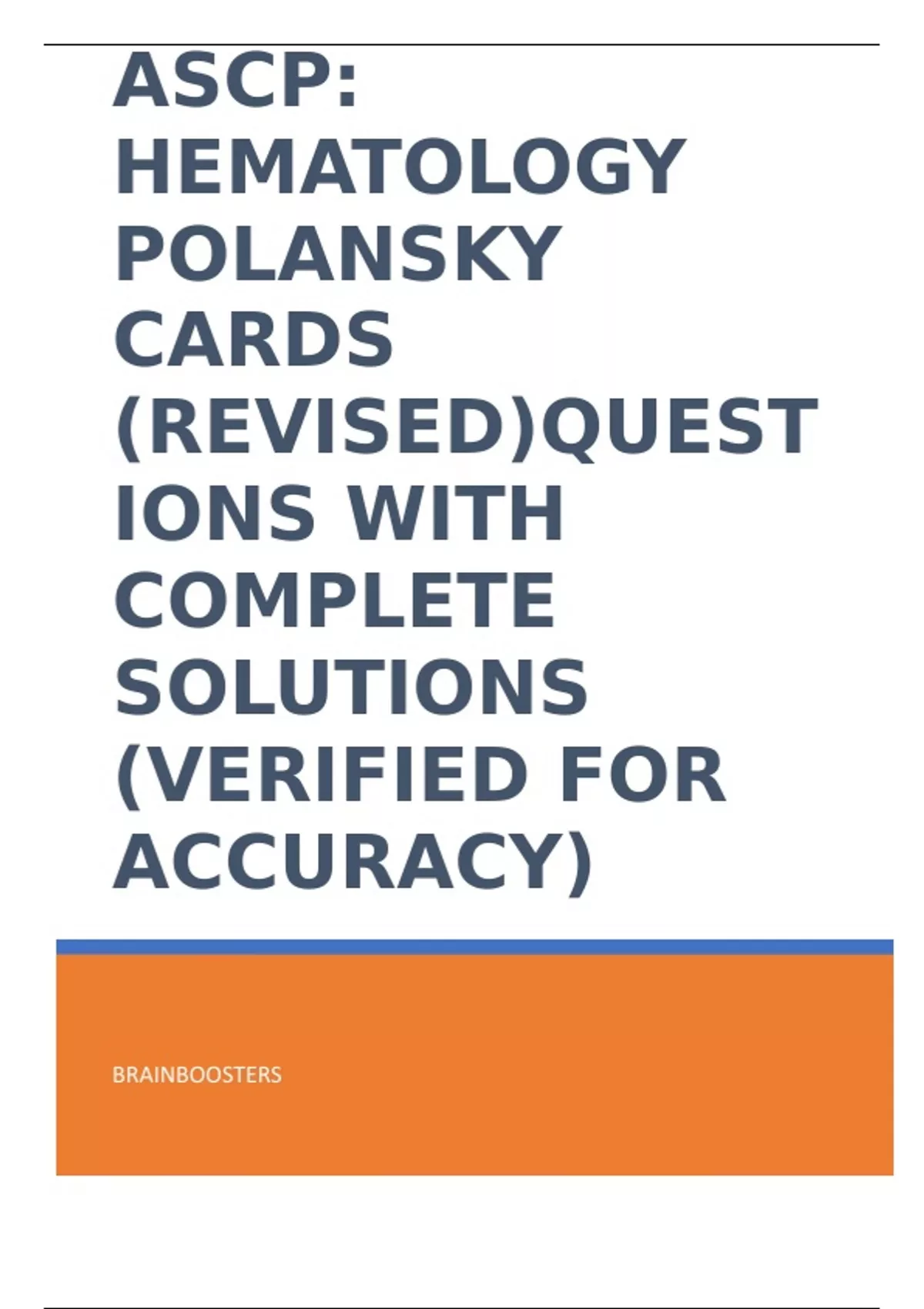 ASCP HEMATOLOGY POLANSKY CARDS (REVISED) QUESTIONS WITH COMPLETE SOLUTIONS