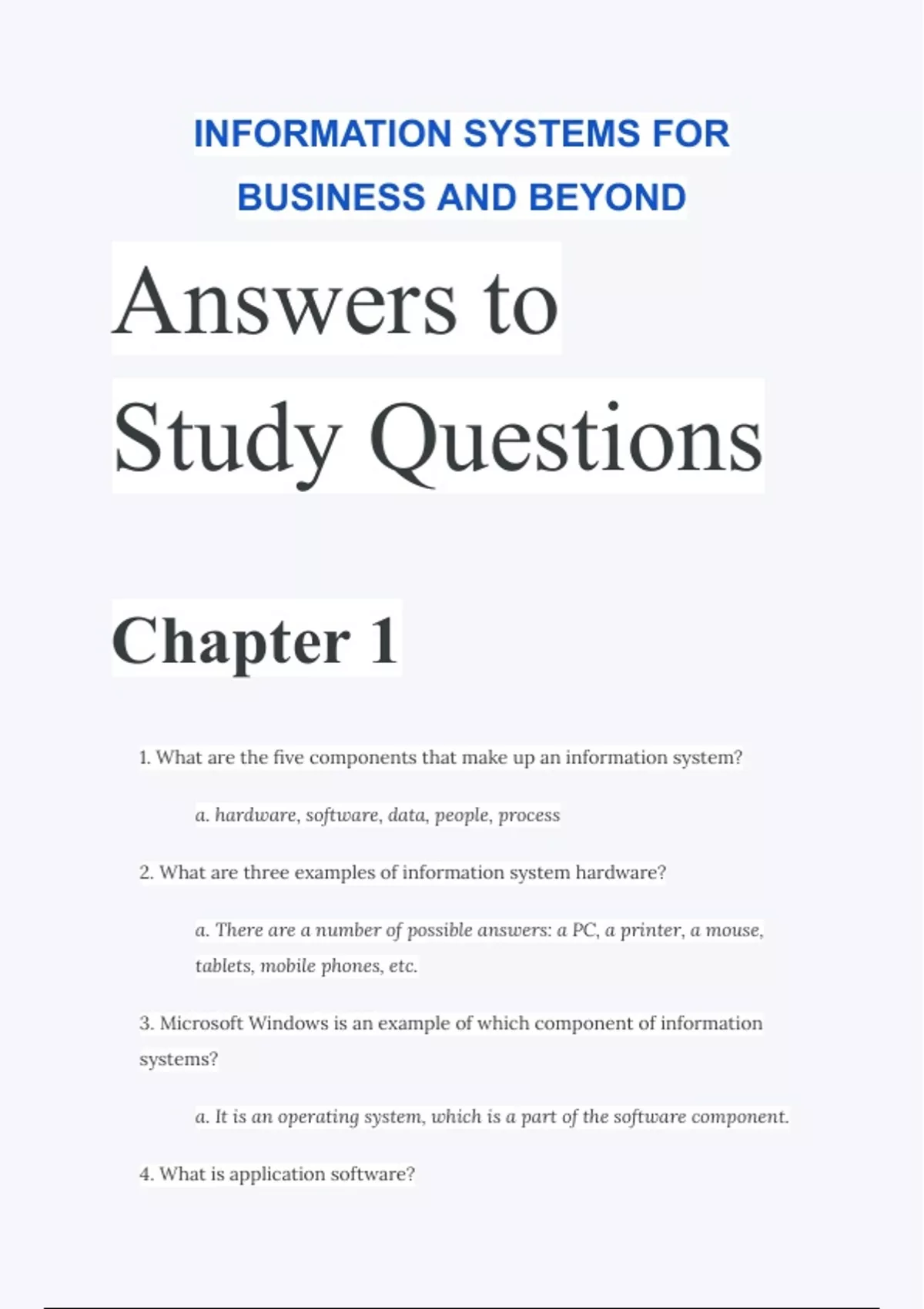 INFORMATION SYSTEMS FOR BUSINESS AND BEYOND Answers to Study Questions.
