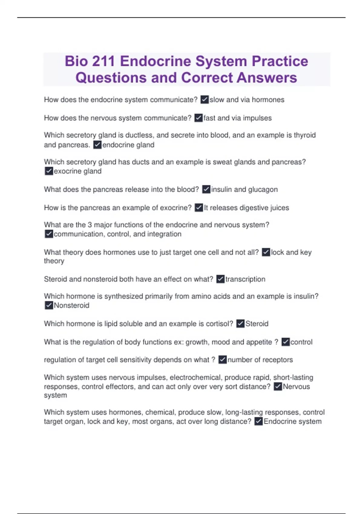 Bio 211 Endocrine System Practice Questions and Correct Answers