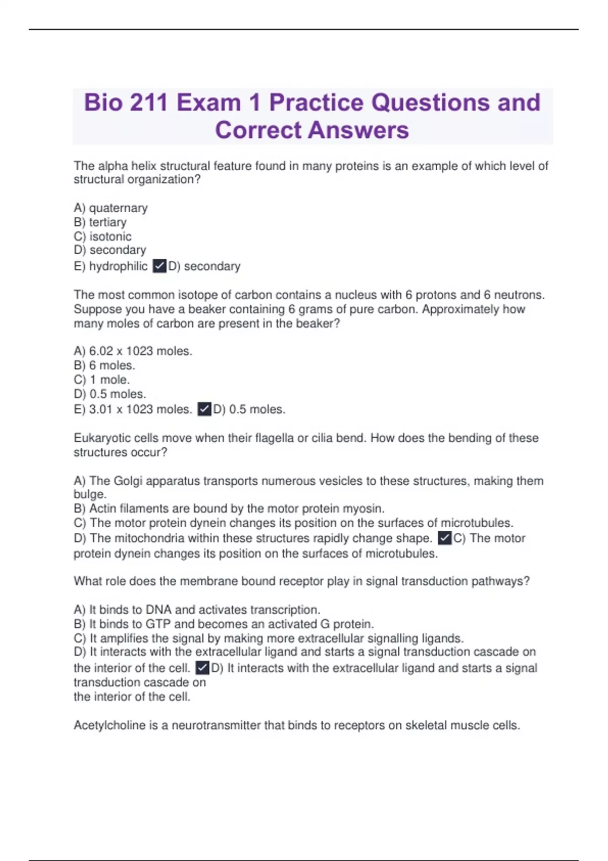 bio 211 exam 1 practice questions and correct answ