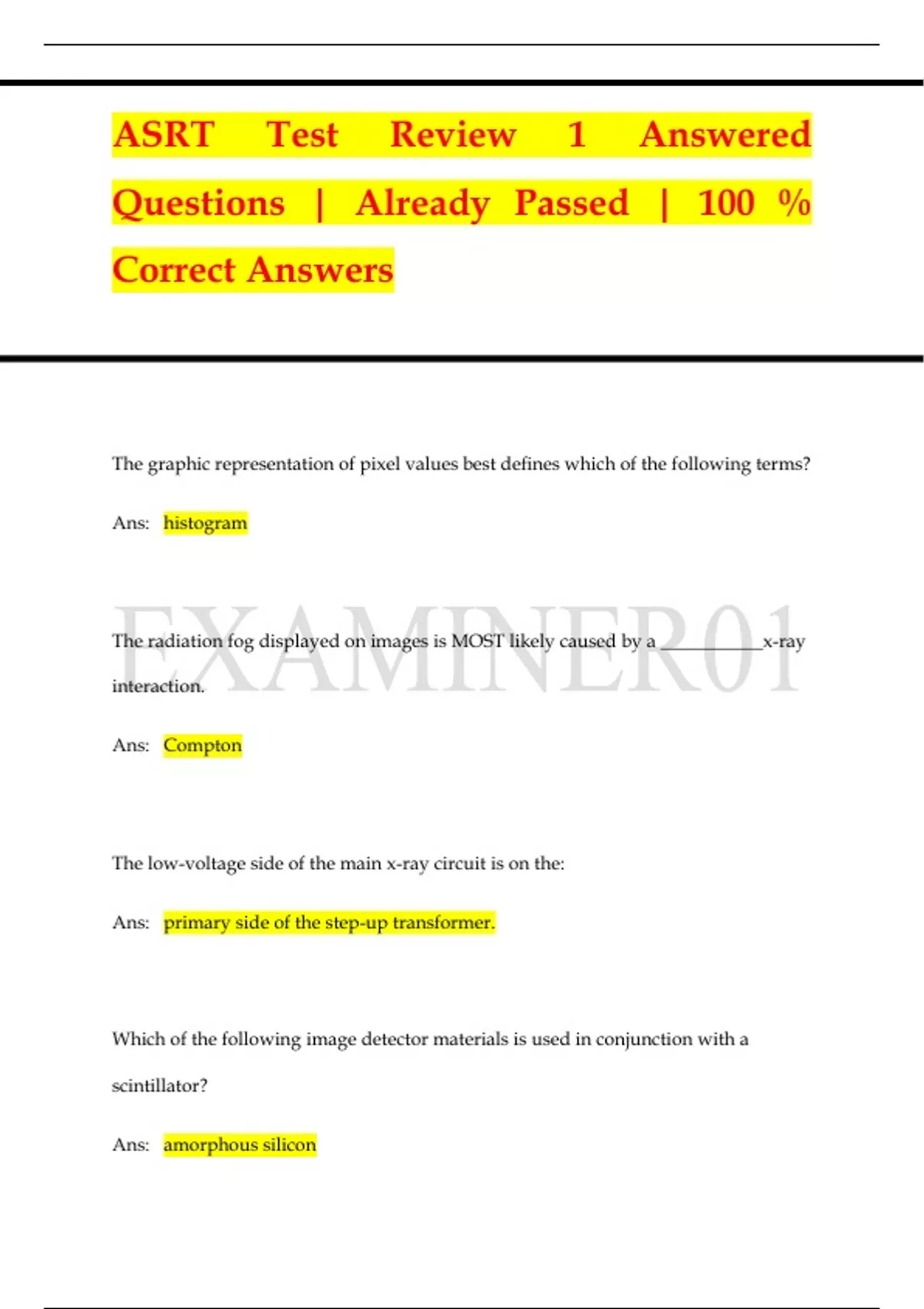 ASRT Test Review 1 Answered Questions | Already Passed | 100 % Correct Answers