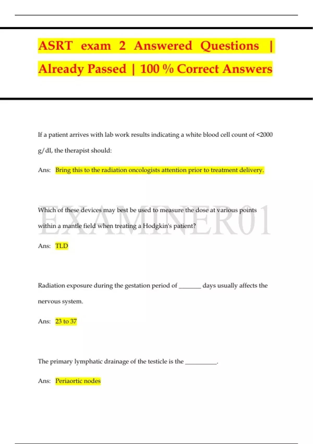 ASRT exam 2 Answered Questions | Already Passed | 100 % Correct Answers