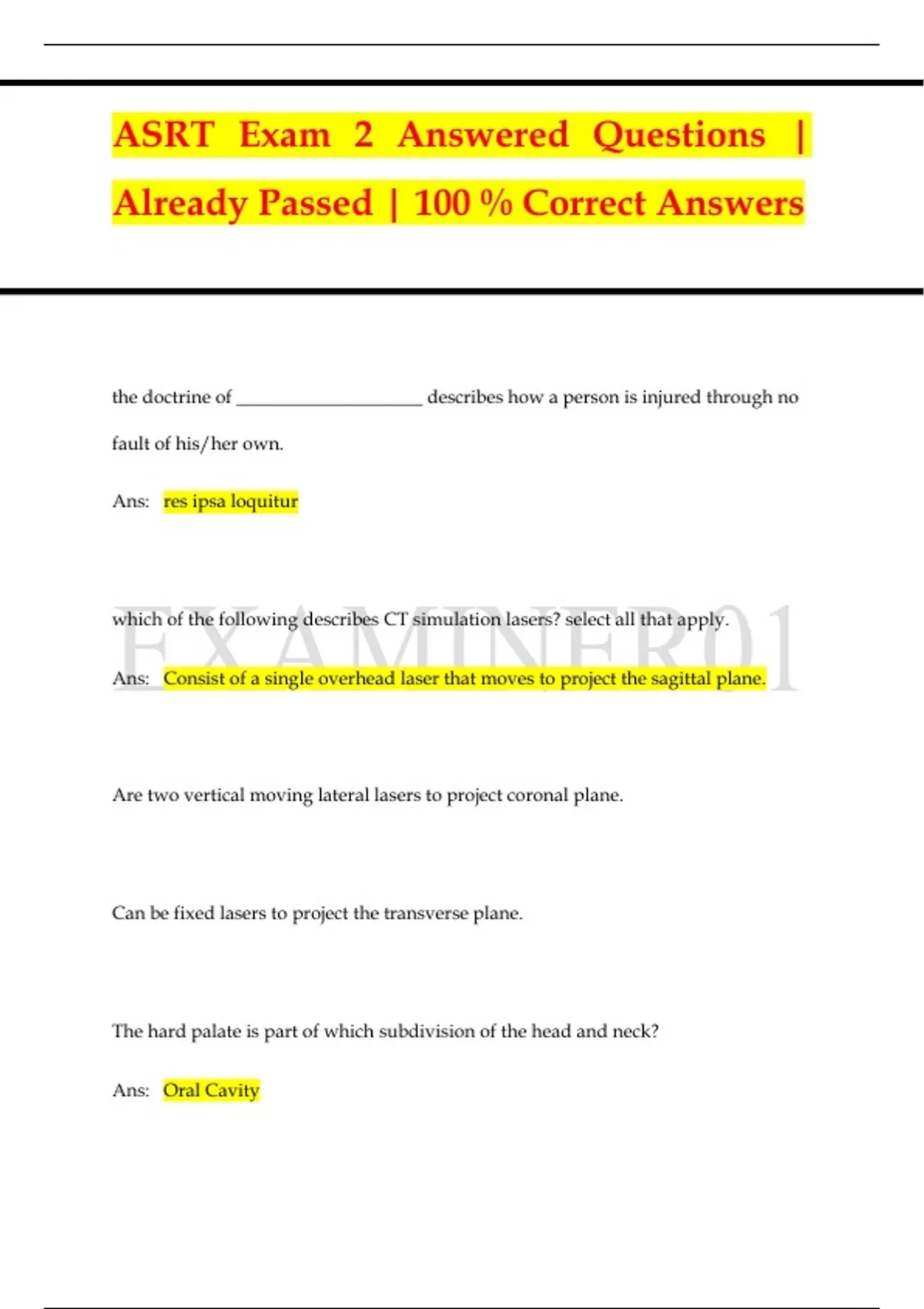 ASRT Exam 2 Answered Questions | Already Passed | 100 % Correct Answers