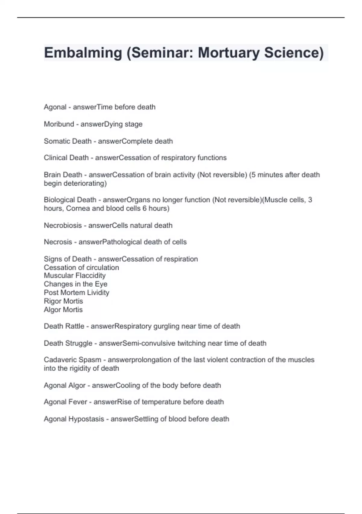 Embalming (Seminar: Mortuary Science) Questions with Solutions