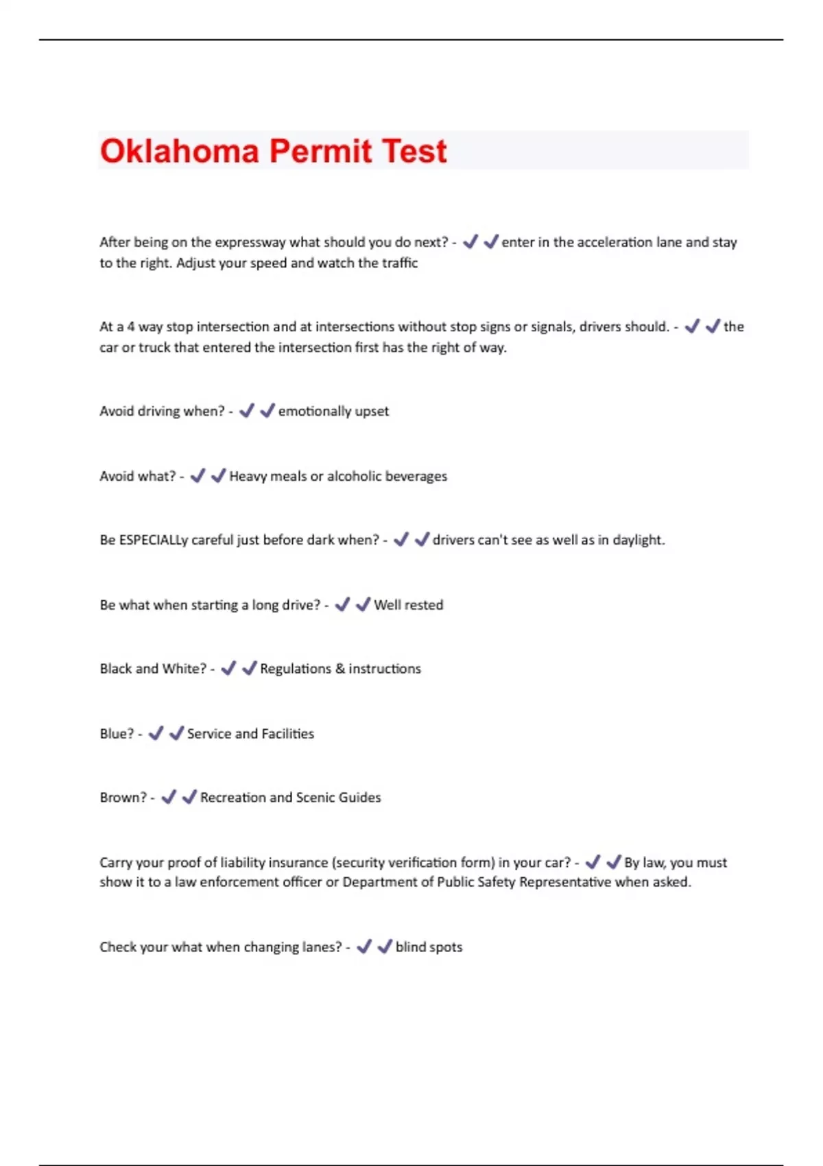 Oklahoma Permit Test Questions And Answers Rated A+ New Update Assured Satisfaction